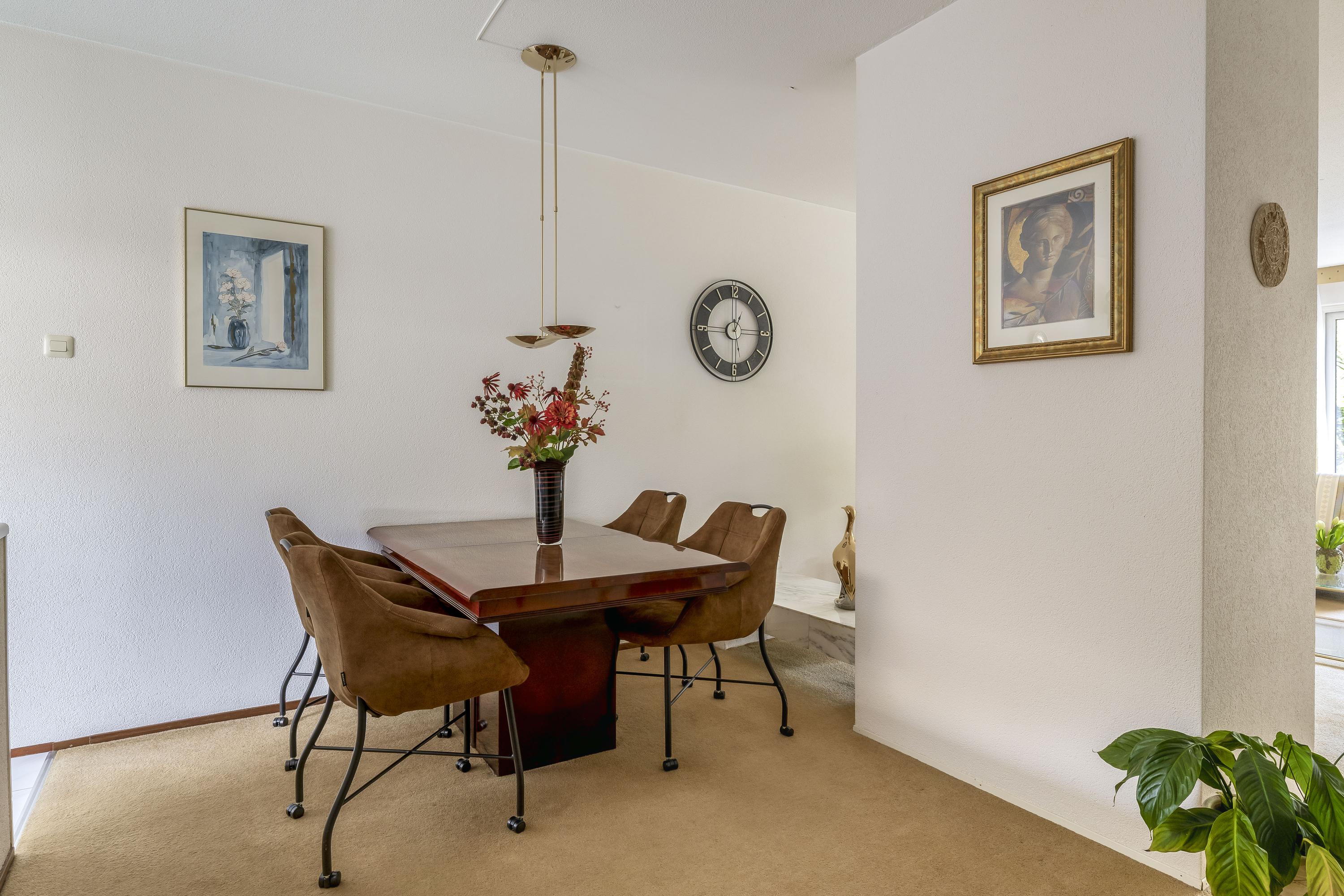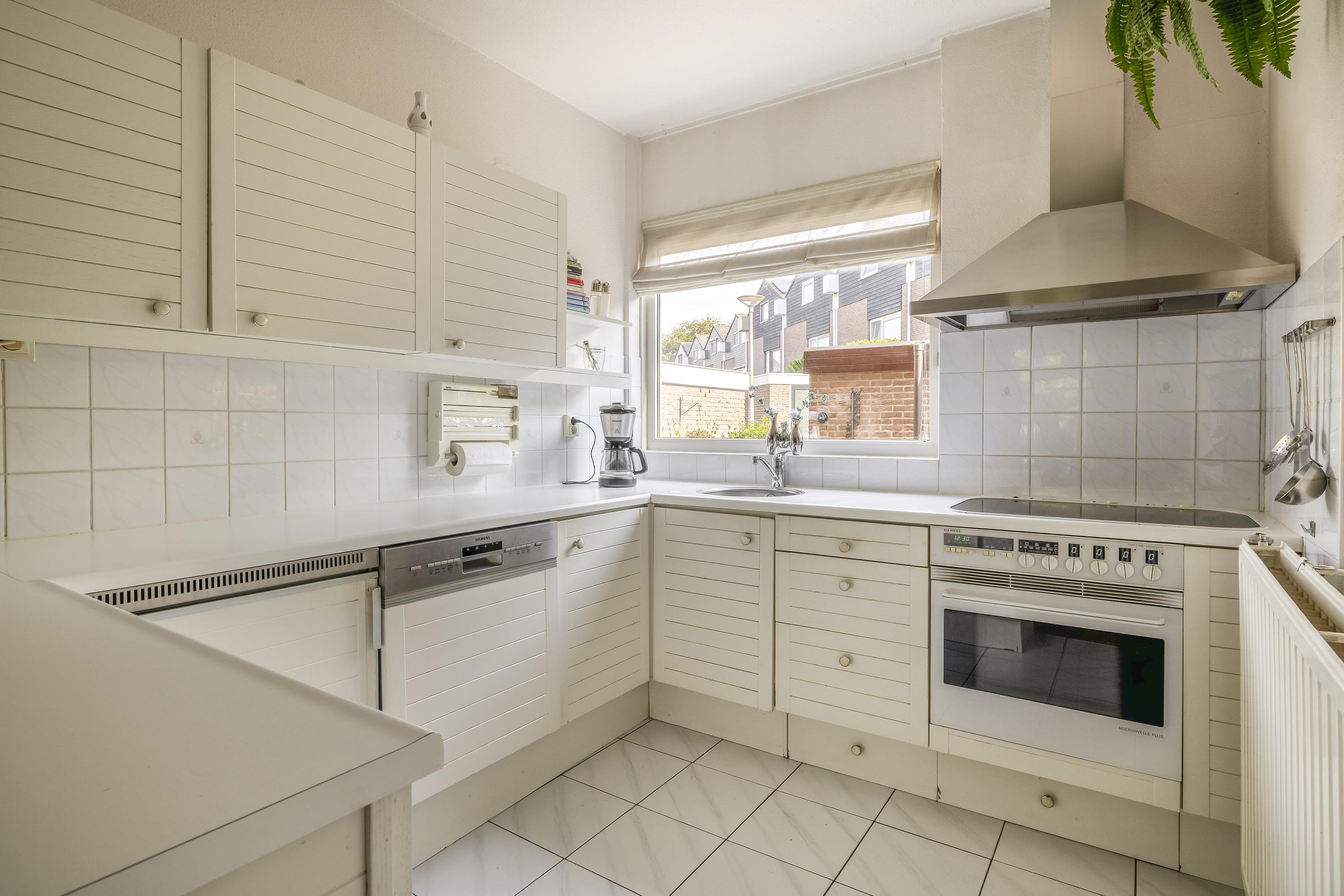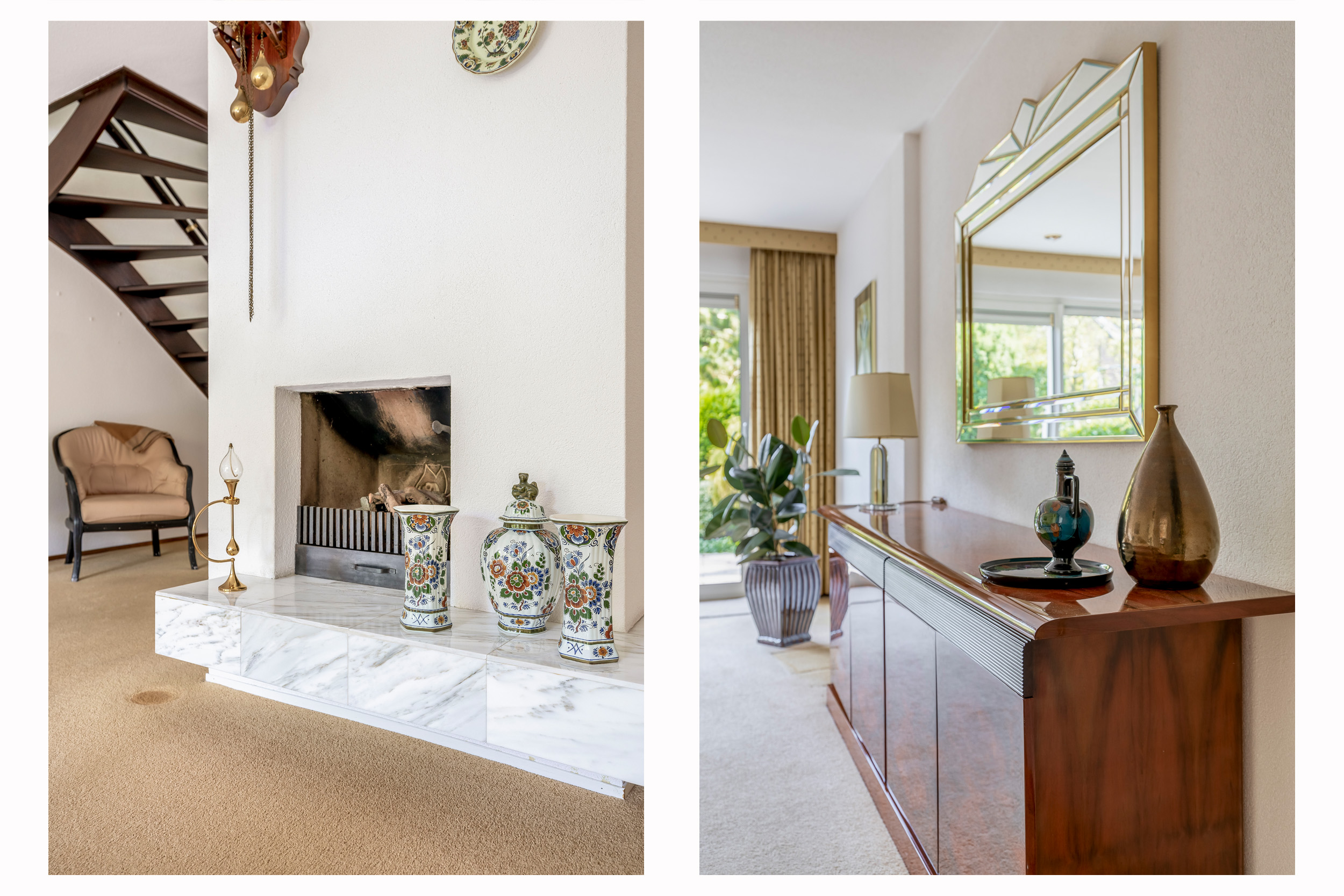 De uitgebouwde woonkamer is een royale en lichte leefruimte, met een sfeervolle open haard. Dankzij de glazen pui over de volle breedte geniet je van een prachtig uitzicht op de groene achtertuin en veel natuurlijk licht. Aan de voorzijde ligt de keuken, voorzien van diverse inbouwapparatuur. Deze ruimte is functioneel, maar leent zich uitstekend voor een moderne make-over.