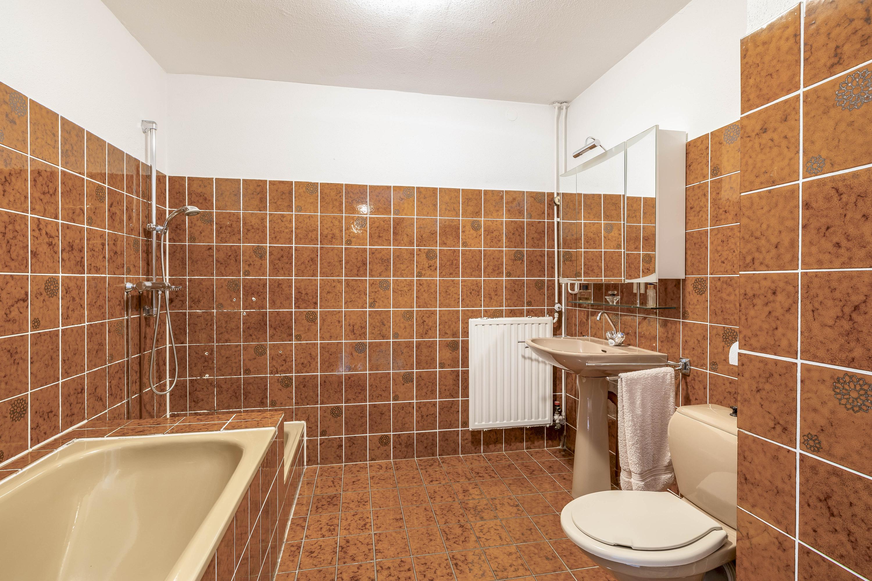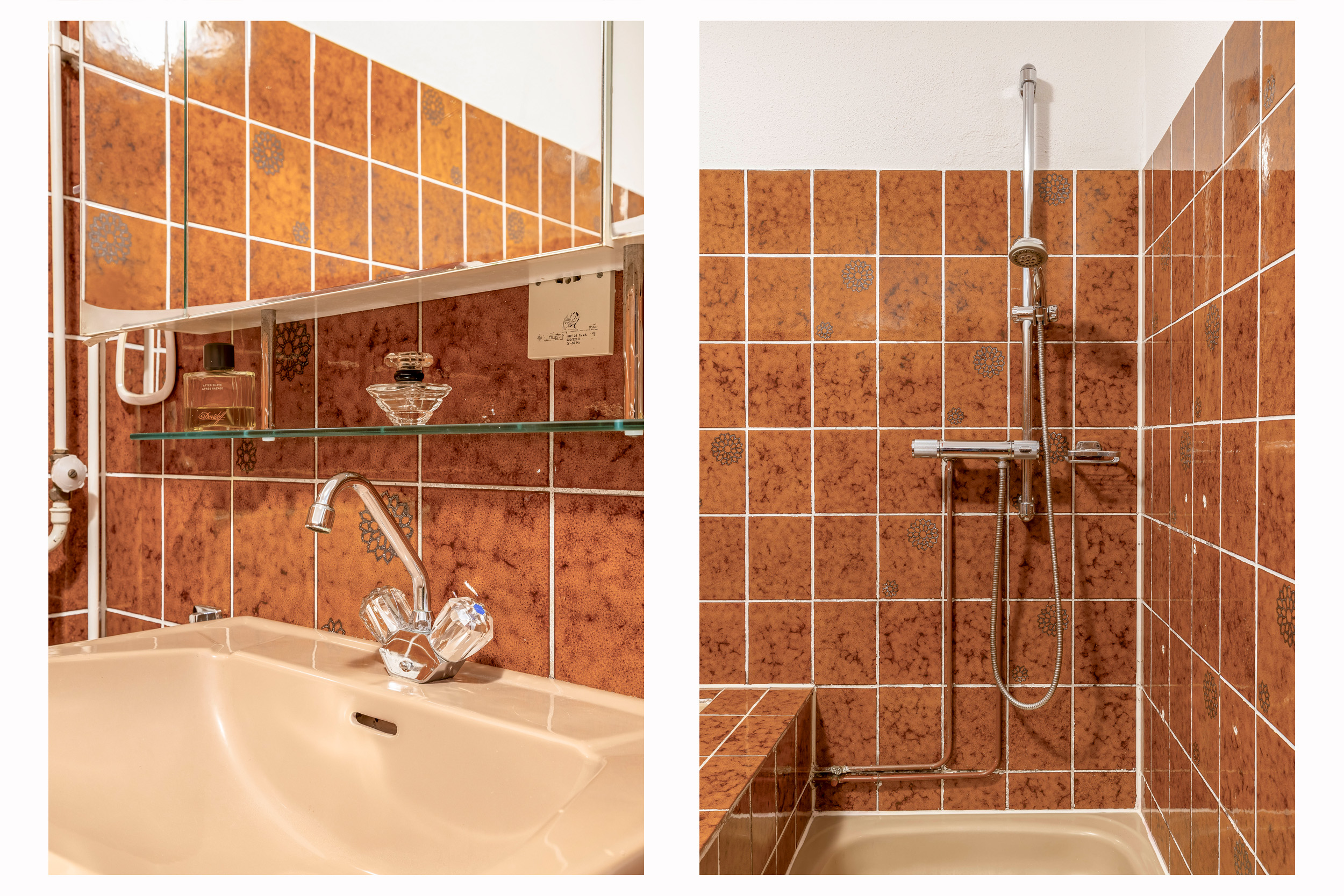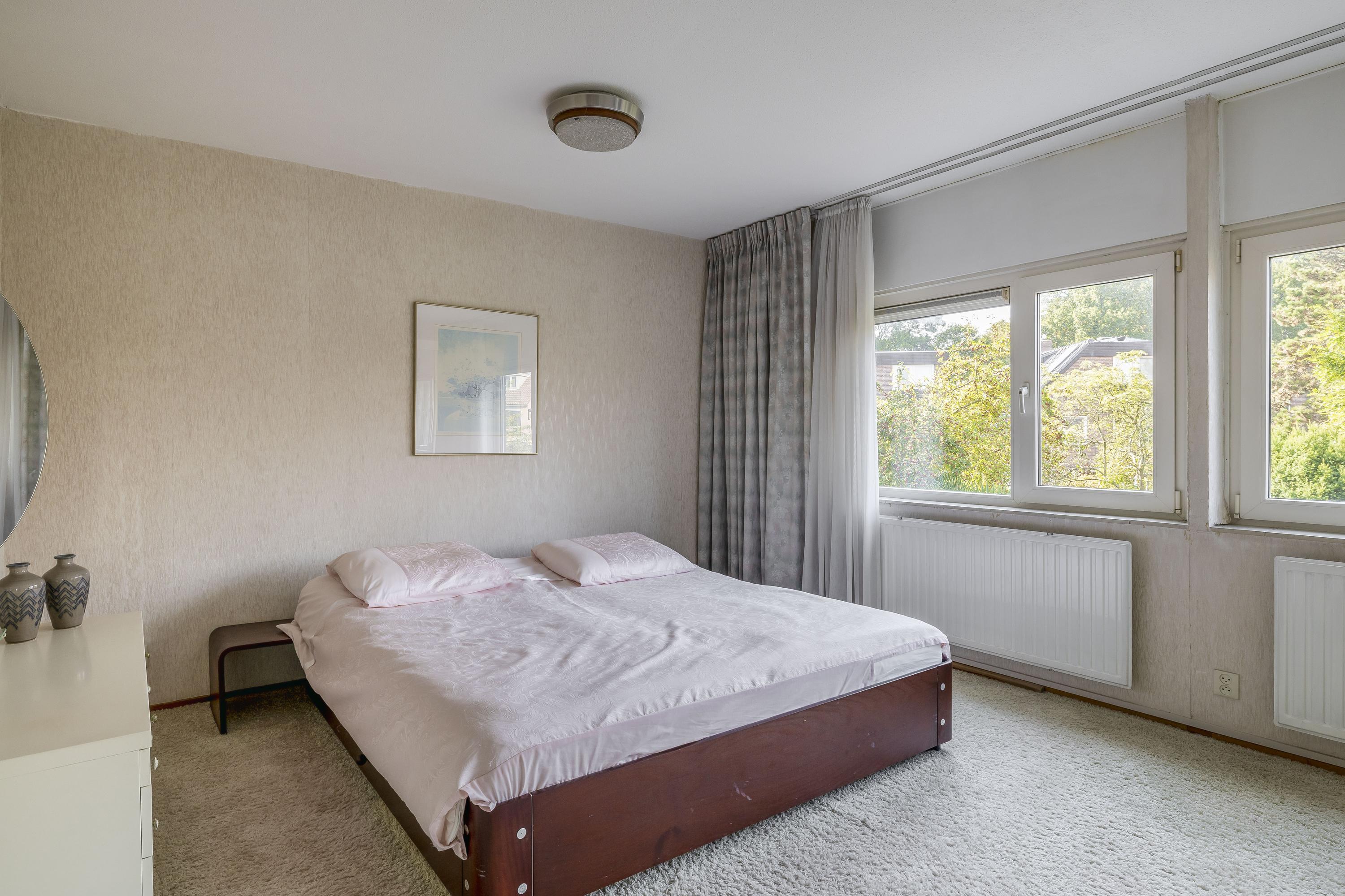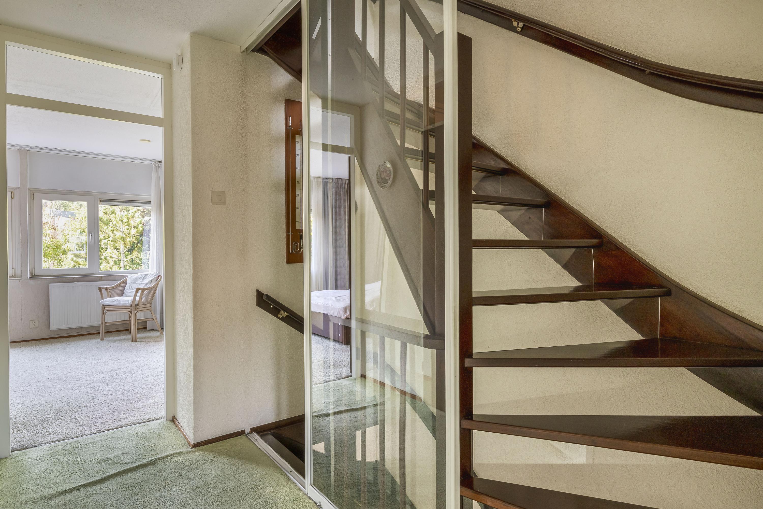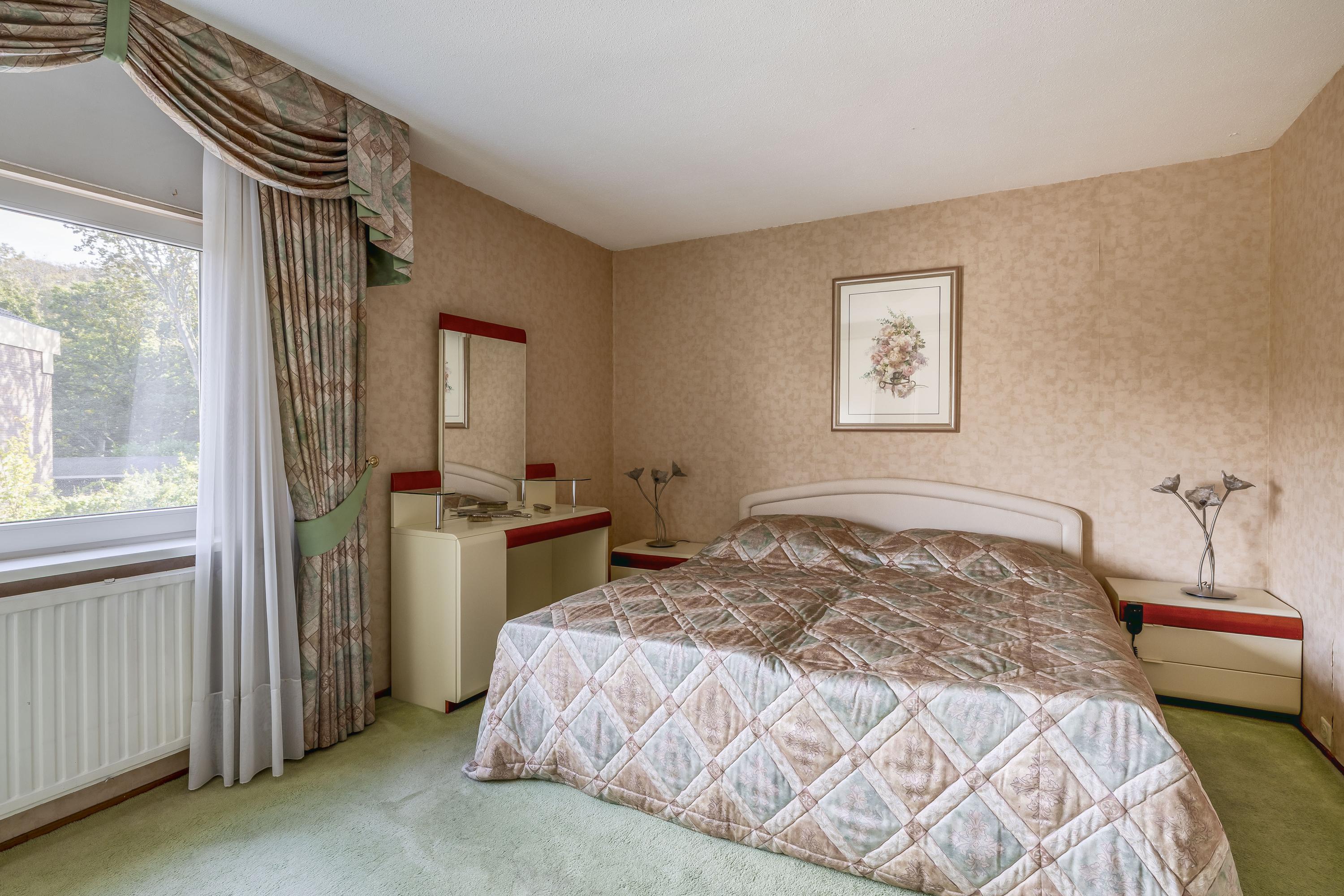 De open trap op de eerste verdieping is dichtgemaakt met een doorzichtige schuifwand, wat voorkomt dat de warmte van de woonkamer naar boven verdwijnt. Hier vind je twee ruime slaapkamers. De grote slaapkamer aan de tuinzijde was oorspronkelijk opgedeeld in 2 slaapkamers. Hier creëer je dus gemakkelijk weer een derde slaapkamer of een droom van een inloopkast. De badkamer beschikt over een ligbad, douche, wastafel en tweede toilet. Ook hier kun je met een frisse blik en wat liefde een eigentijdse ruimte creëren.
