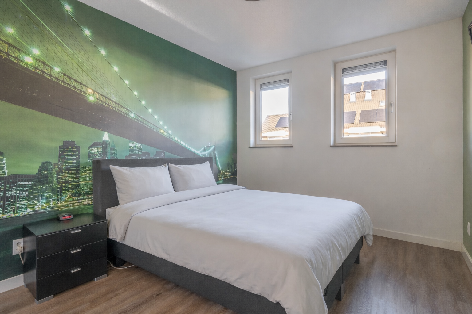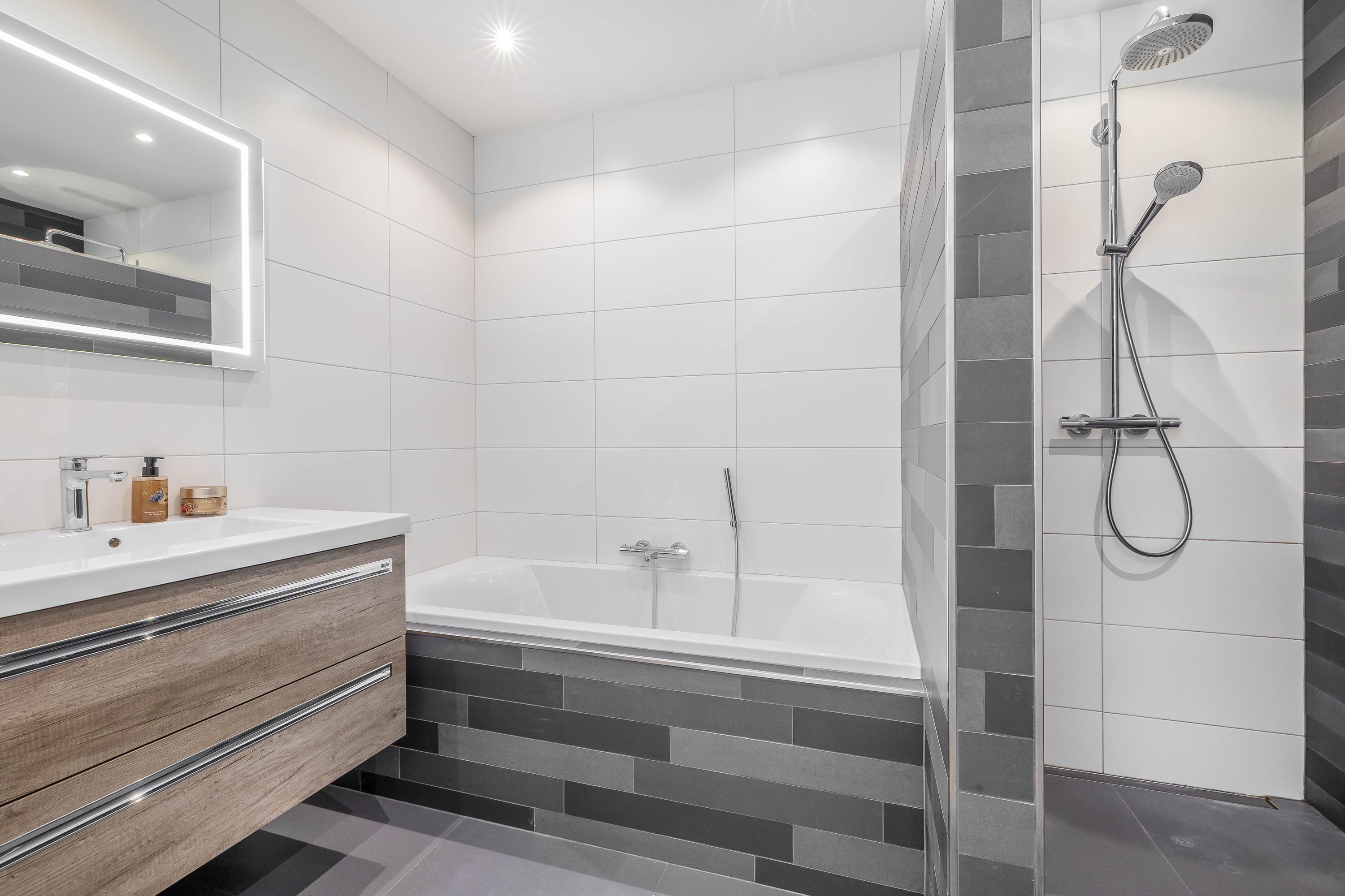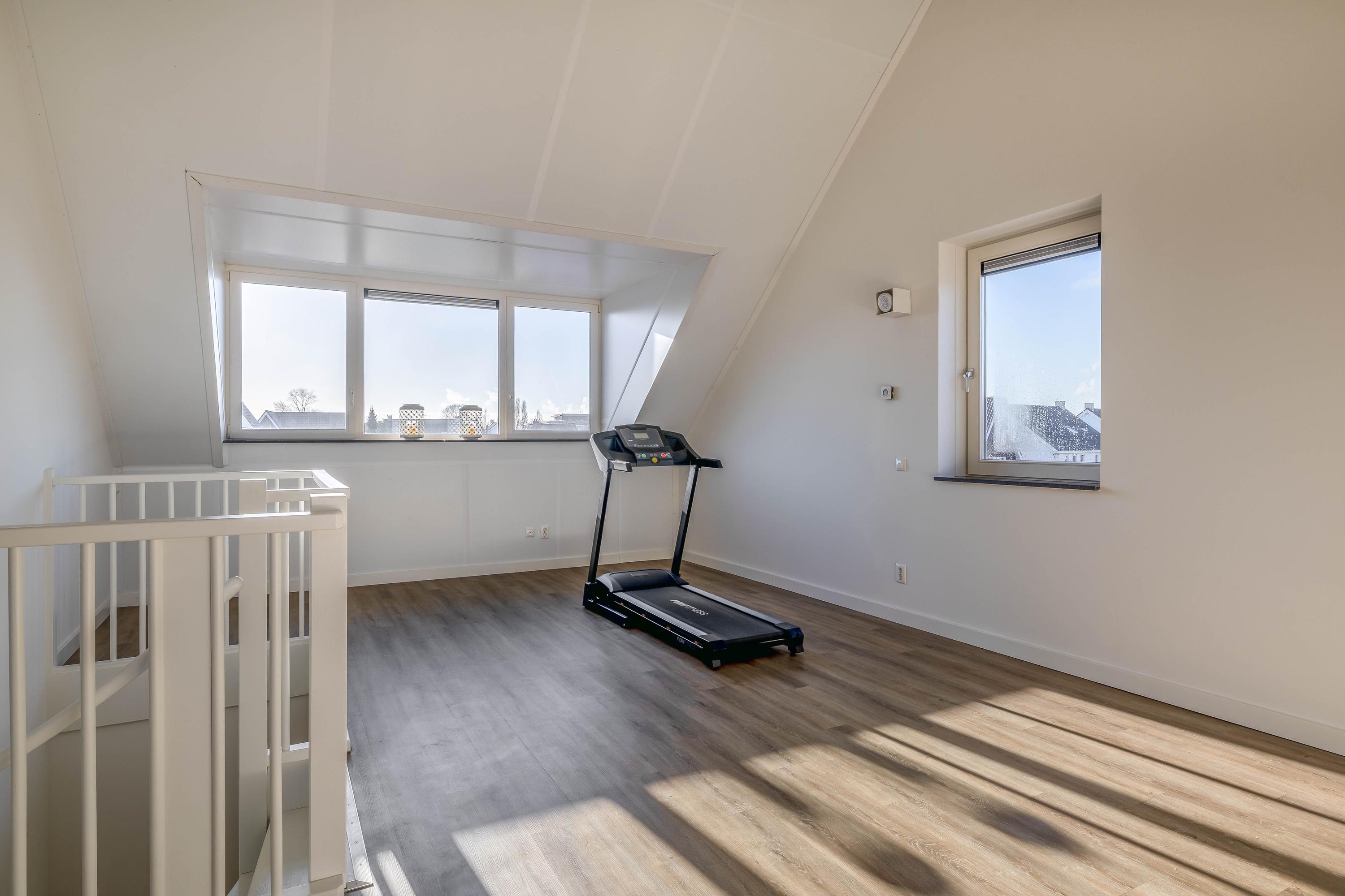 Op deze verdieping bevinden zich drie keurig afgewerkte slaapkamers. De moderne badkamer is uitgevoerd in een tijdloze kleurstelling en beschikt over een ligbad, een ruime inloopdouche en een strak wastafelmeubel met bijpassende spiegel. De afwerking is verzorgd en praktisch, wat zorgt voor een comfortabele en functionele ruimte. Tevens is hier ook mechanische ventilatie voor de afzuiging te vinden. Op de overloop bevindt zich daarnaast een separaat toilet. Zowel de badkamer als deze verdieping zijn voorzien van vloerverwarming, wat bijdraagt aan extra comfort.