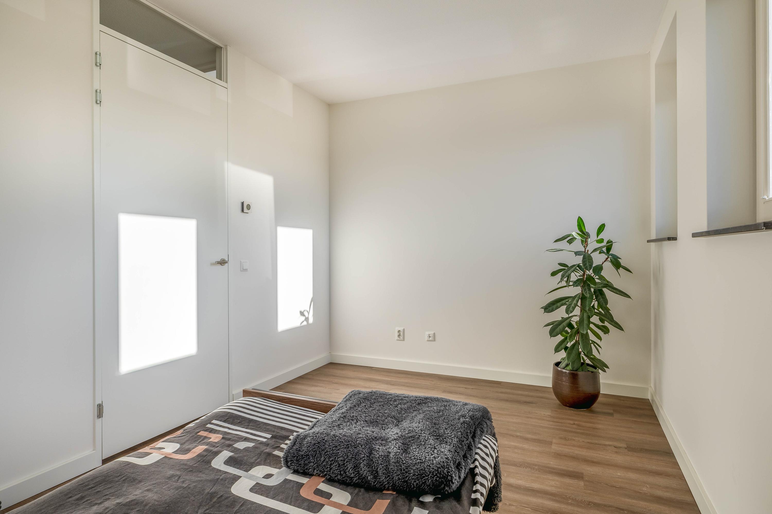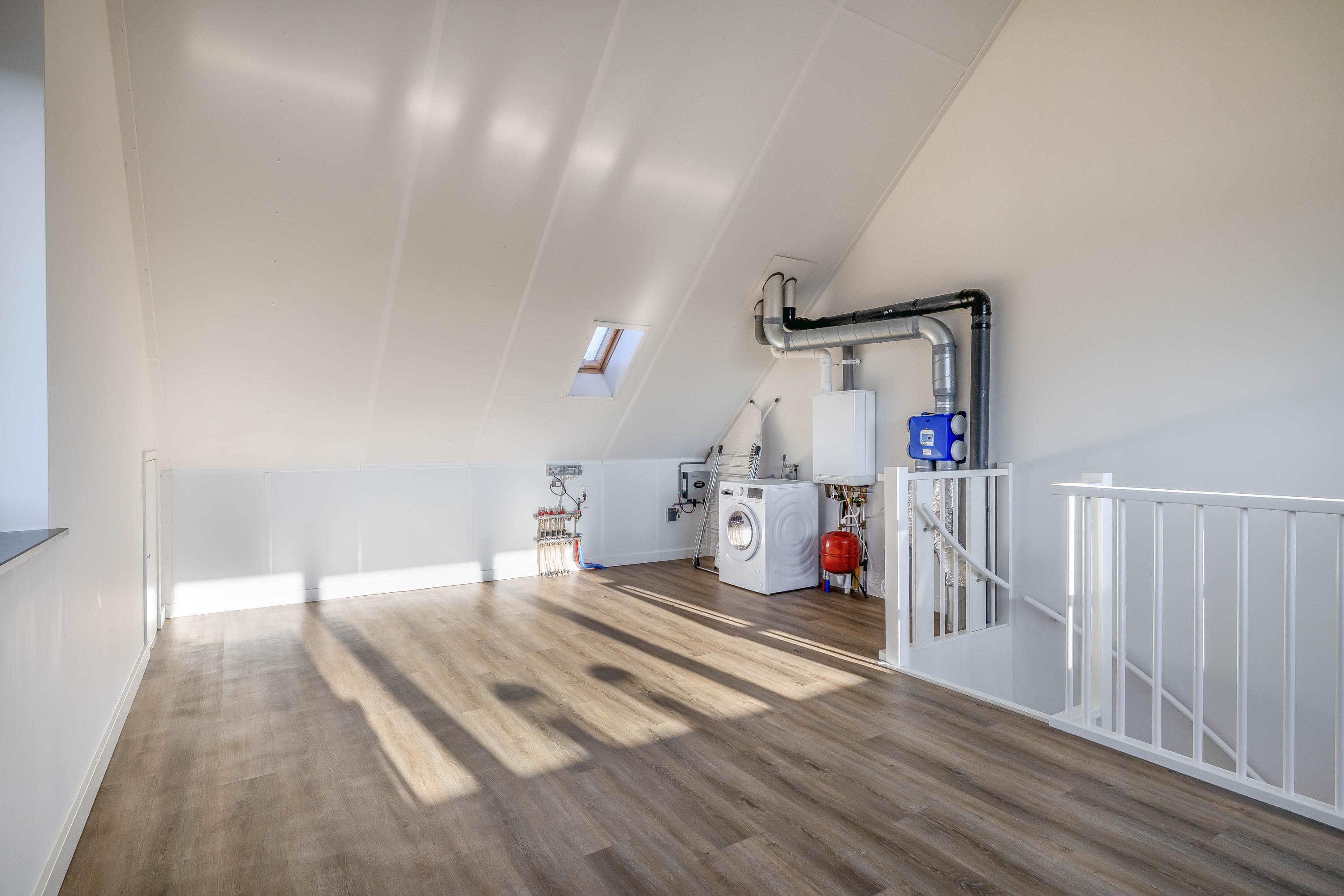 De tweede verdieping is verrassend ruim en ingericht als volwaardige vierde slaapkamer. Door de prettige hoogte en de aanwezigheid van een dakraam en dakkapel is dit een comfortabele en veelzijdige ruimte, die ook uitstekend geschikt is als werk- of hobbykamer. Op deze etage bevinden zich de aansluitingen voor de was-apparatuur en de technische installaties. Daarnaast is er volop bergruimte achter de dakschotten en een grote (inloop)kast aanwezig.