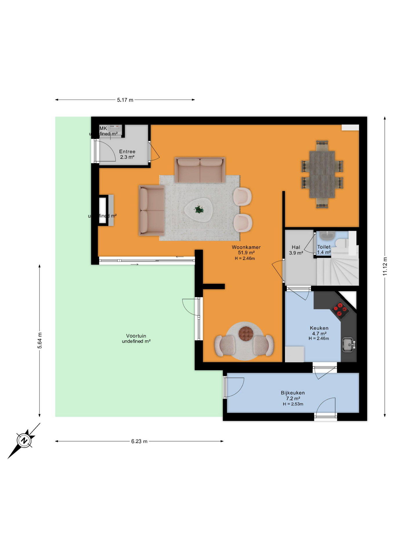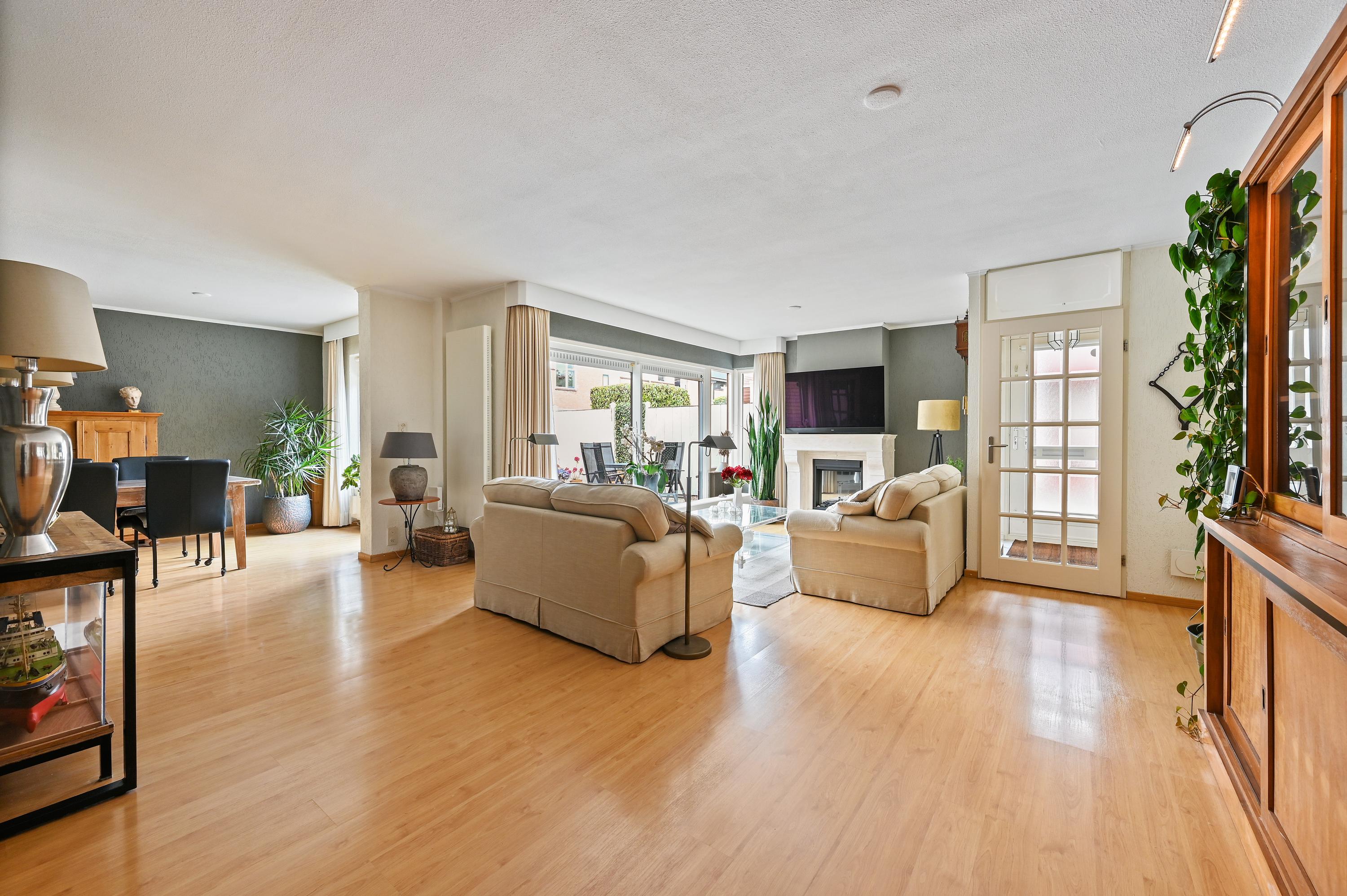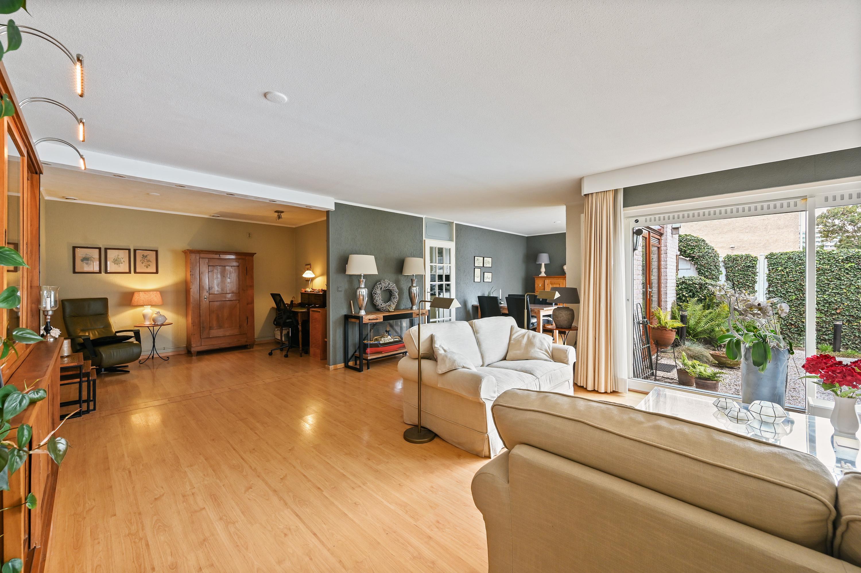 Via de entree met meterkast kom je in de royale woonkamer, waar de grote ramen zorgen voor veel lichtinval en een prettige, open sfeer. De woonkamer biedt volop ruimte voor zowel een zit- als eethoek, een schuifpui naar de tuin en heeft een sfeervolle gashaard als centraal punt.
