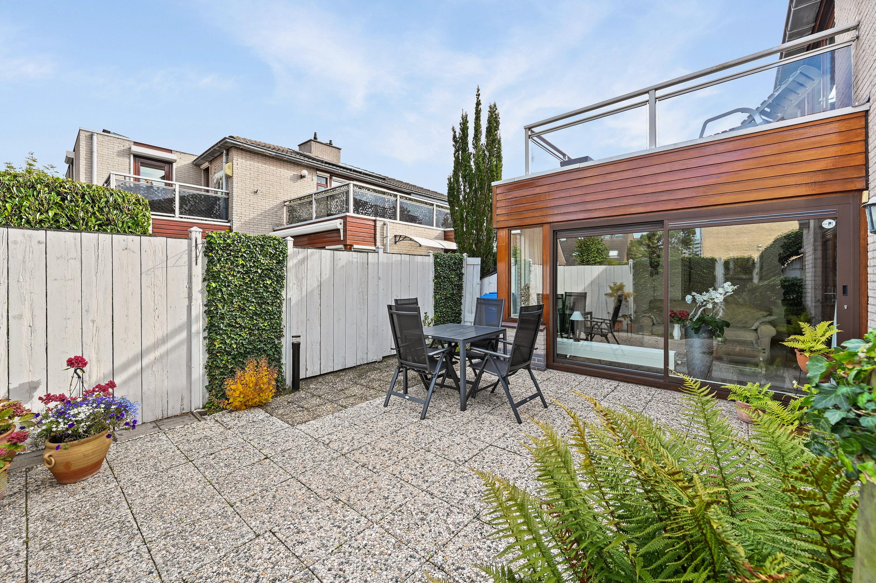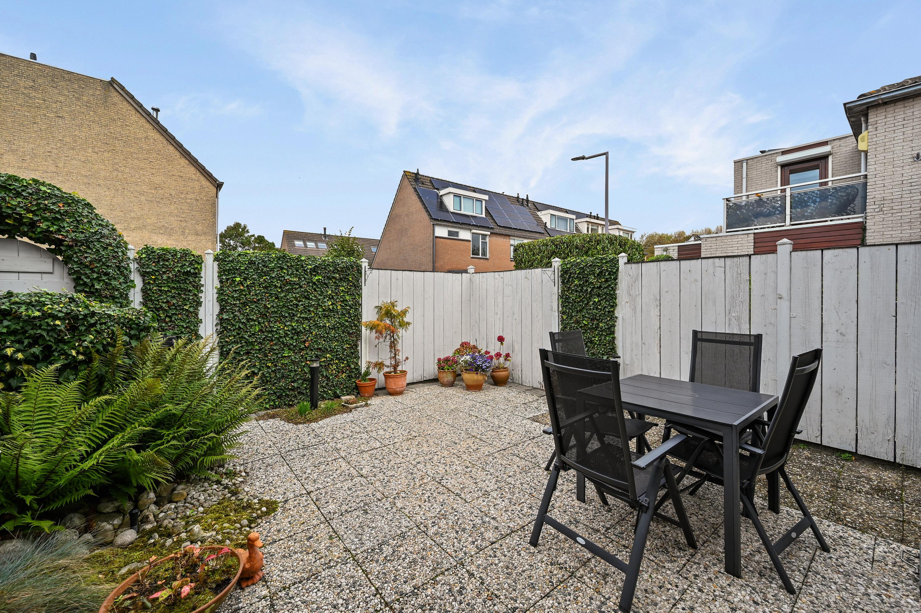 De voortuin is verzorgd aangelegd met sierbestrating en groenblijvende beplanting, waardoor je hier een heerlijke, rustige plek hebt om buiten te zitten. Dankzij de beschutte ligging geniet je volop van privacy. Ideaal voor een kop koffie in de ochtendzon of een gezellige borrel in de namiddag.