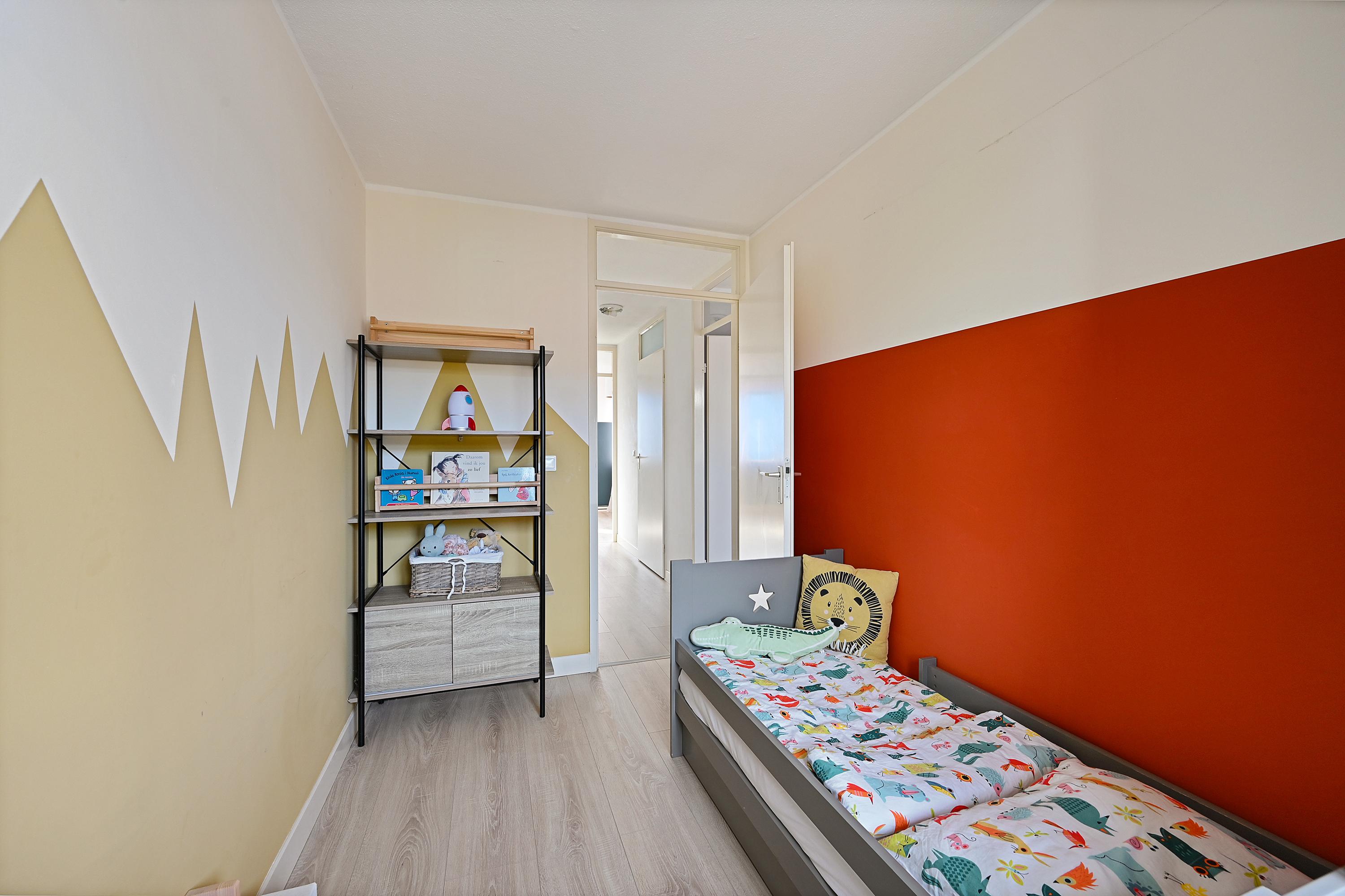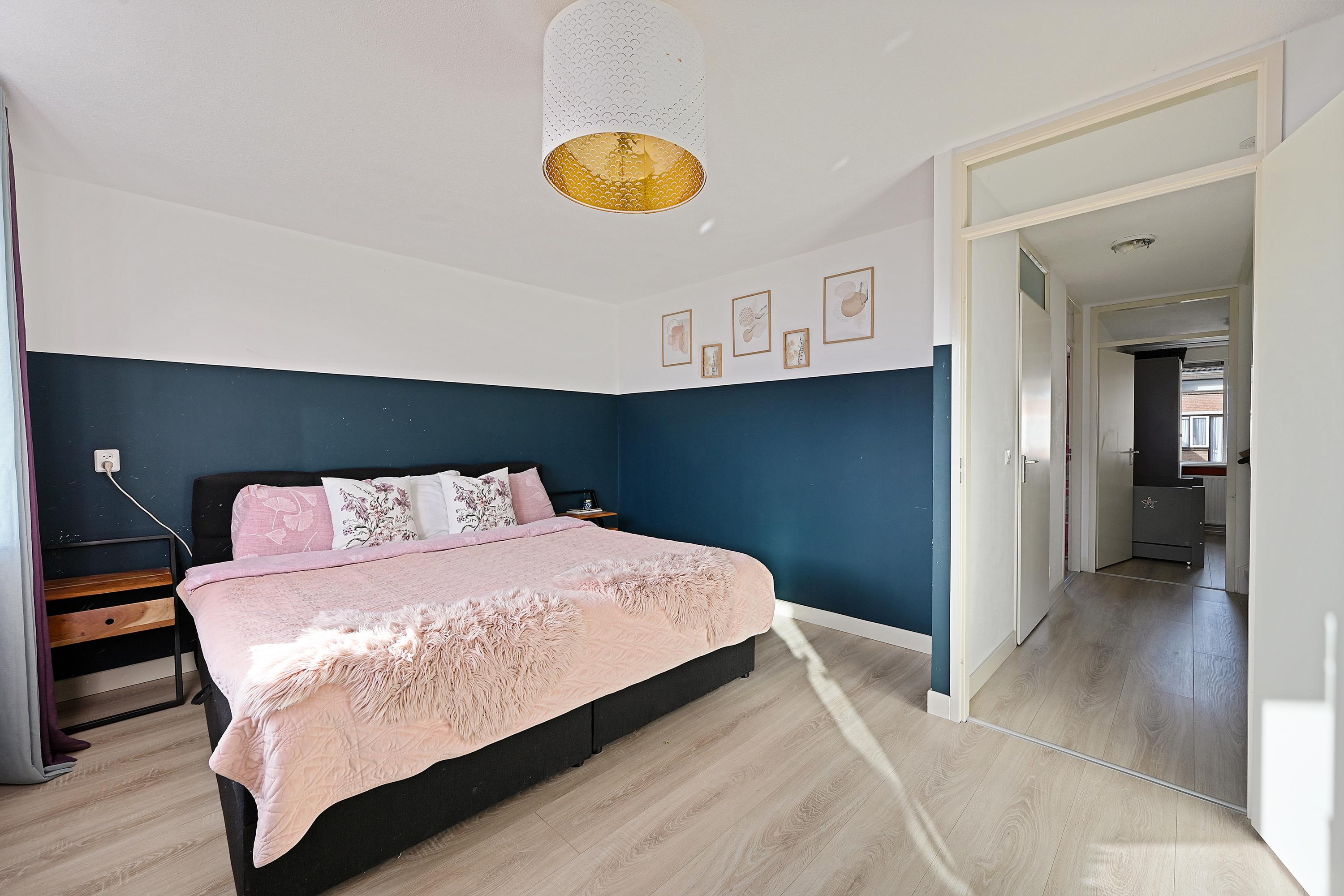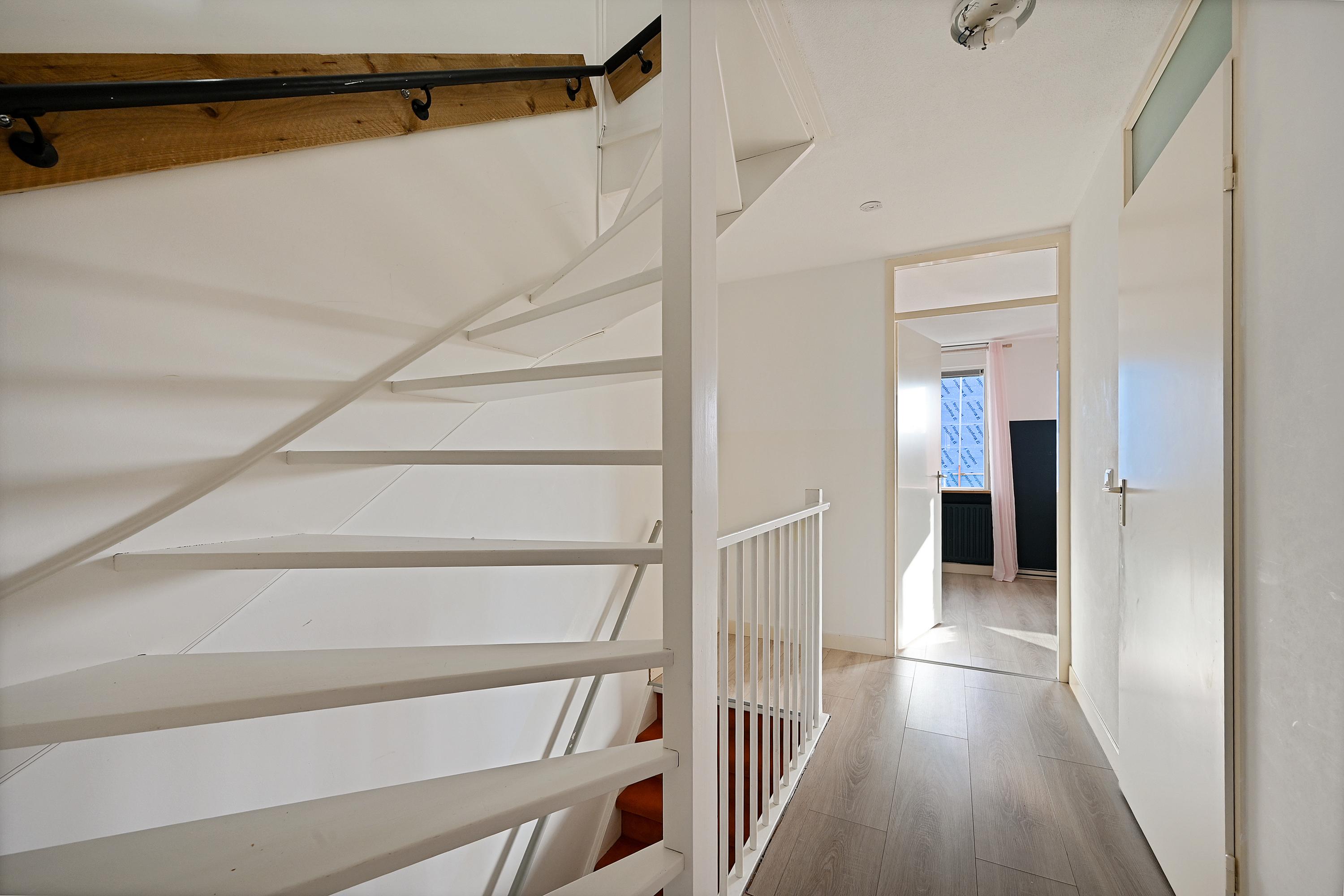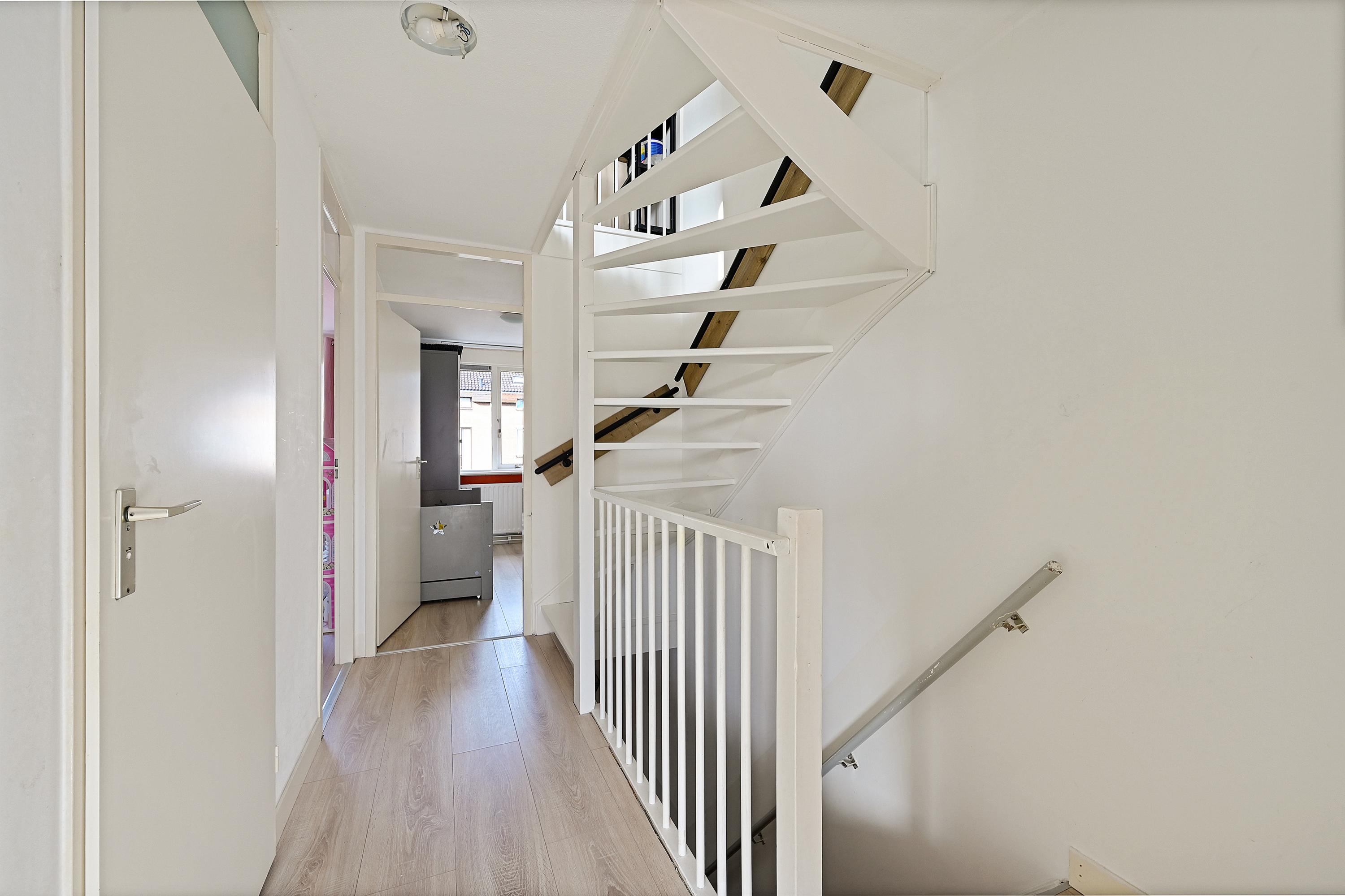 Op de eerste verdieping bevinden zich drie slaapkamers, waaronder de ruime hoofdslaapkamer aan de achterzijde. Alle kamers zijn netjes afgewerkt en voorzien van een laminaatvloer. De badkamer is modern uitgevoerd en beschikt over een douche, wastafelmeubel en een tweede toilet.