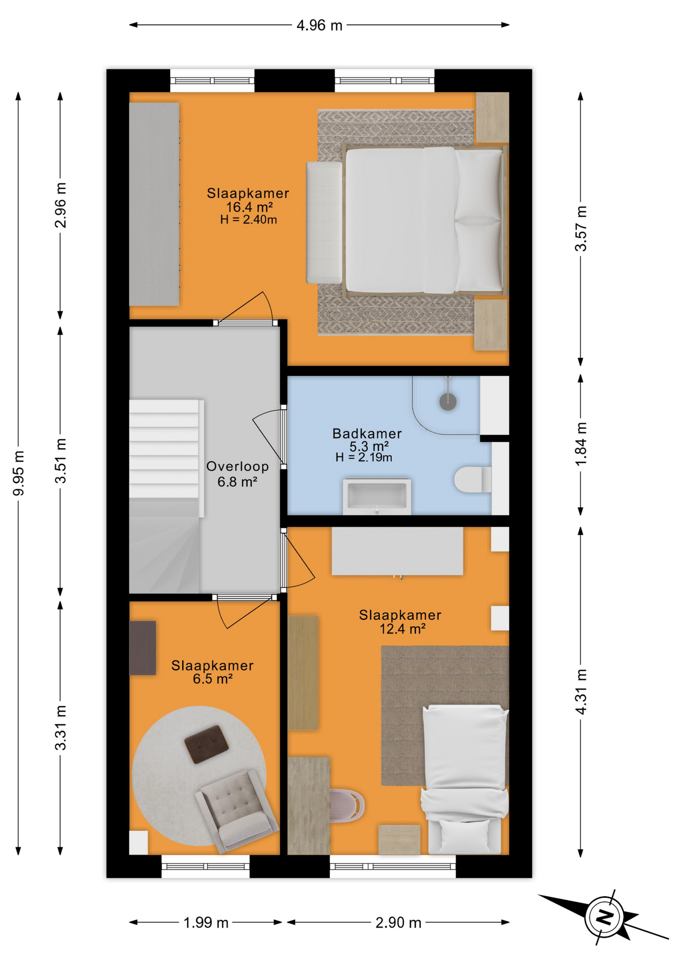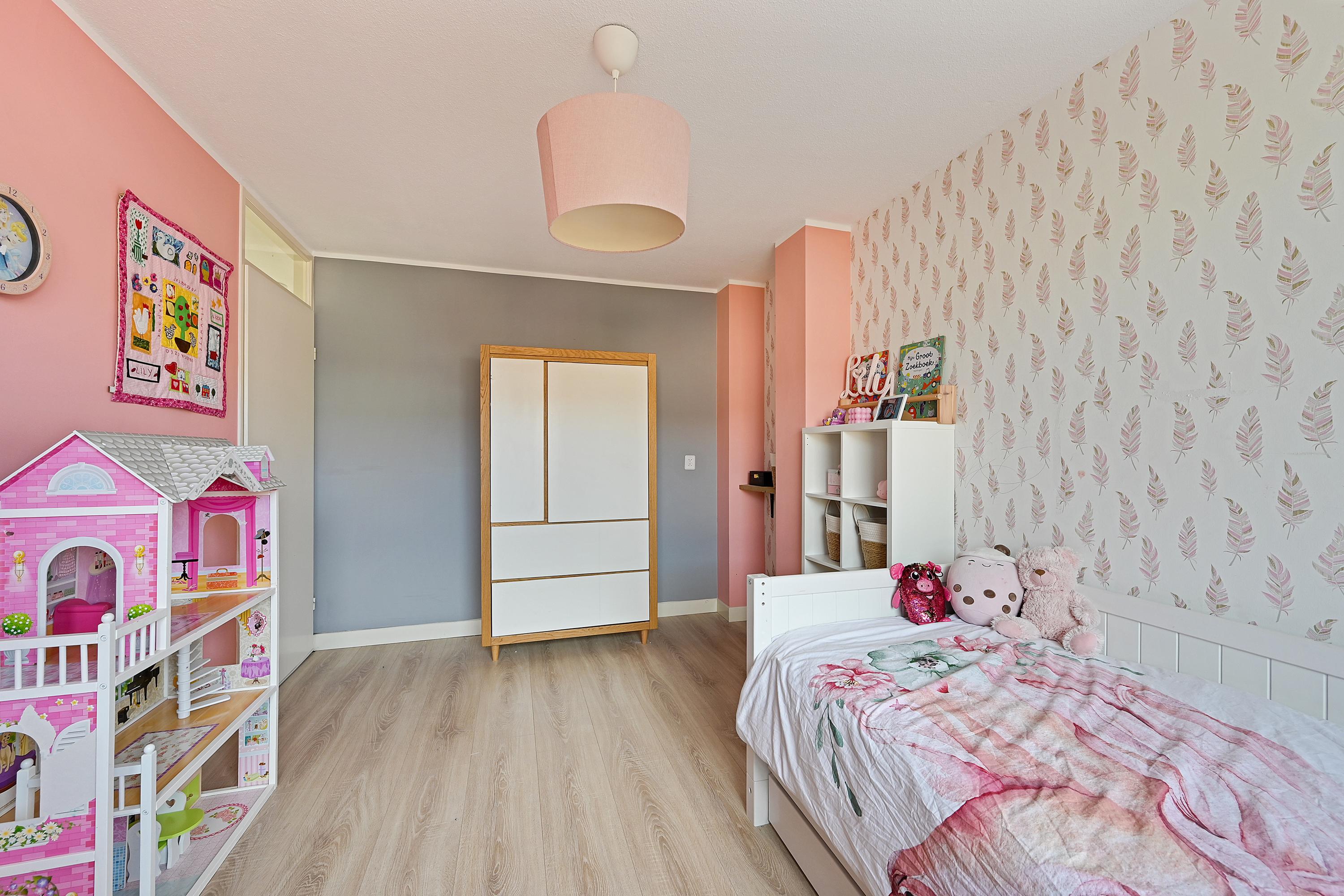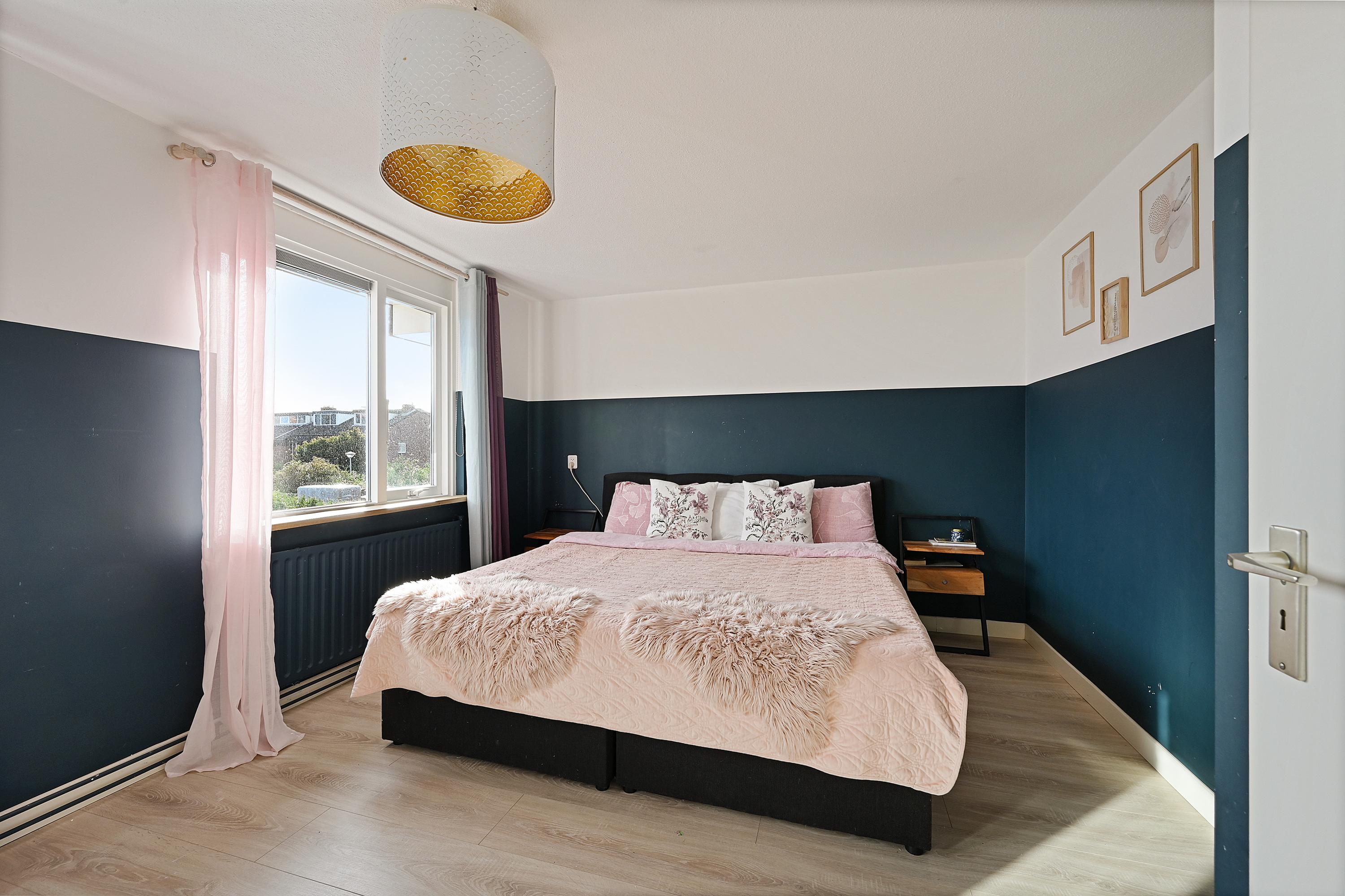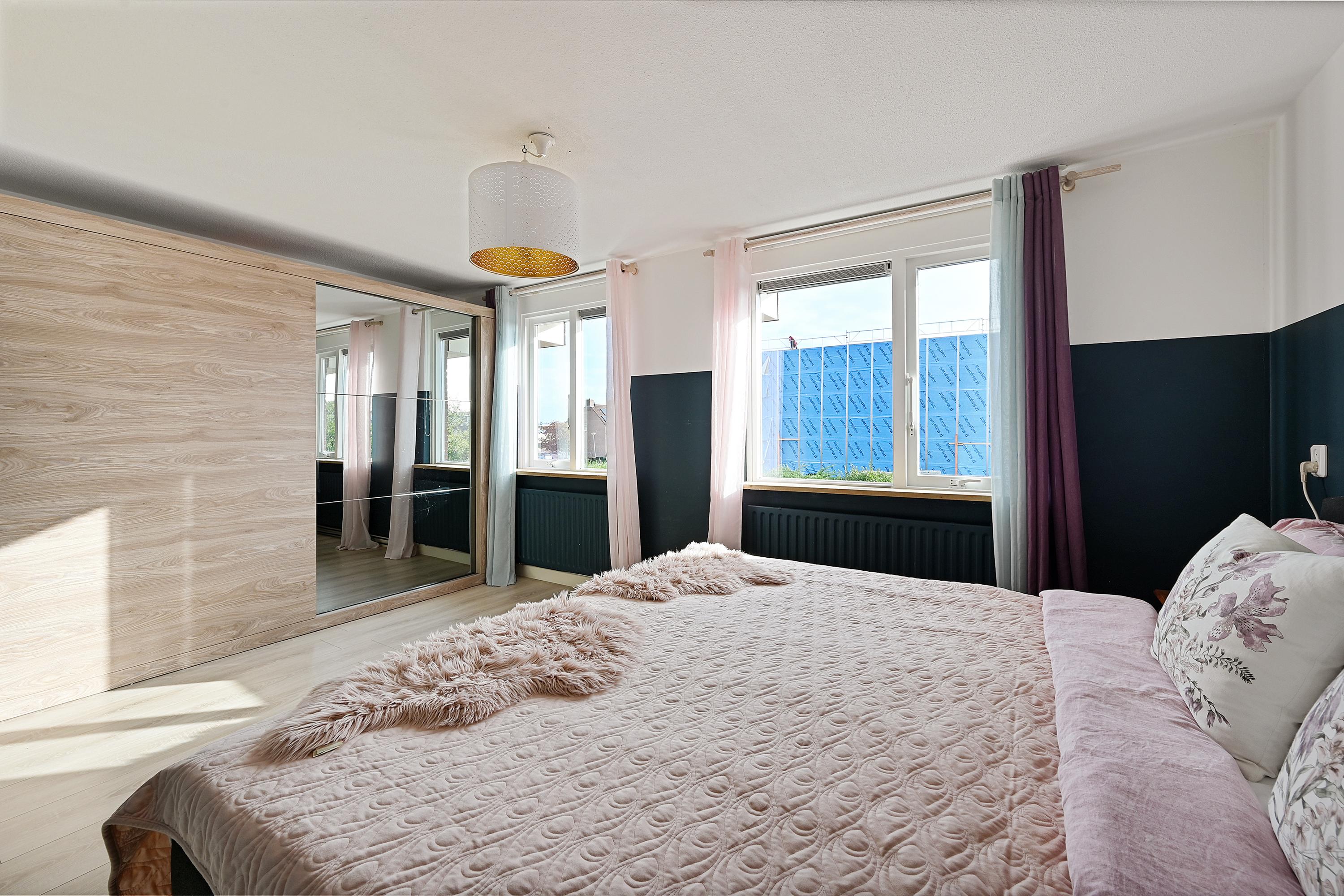 Op de eerste verdieping bevinden zich drie slaapkamers, waaronder de ruime hoofdslaapkamer aan de achterzijde. Alle kamers zijn netjes afgewerkt en voorzien van een laminaatvloer. De badkamer is modern uitgevoerd en beschikt over een douche, wastafelmeubel en een tweede toilet.