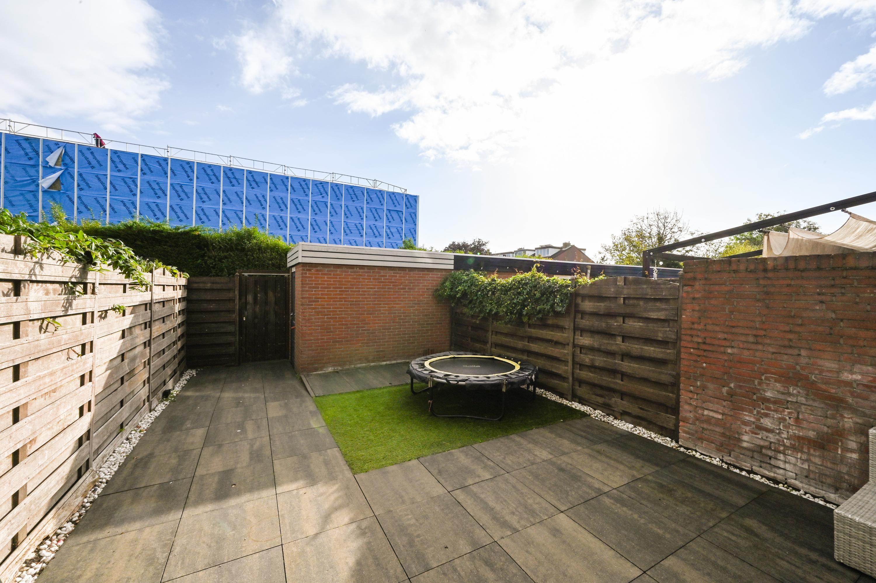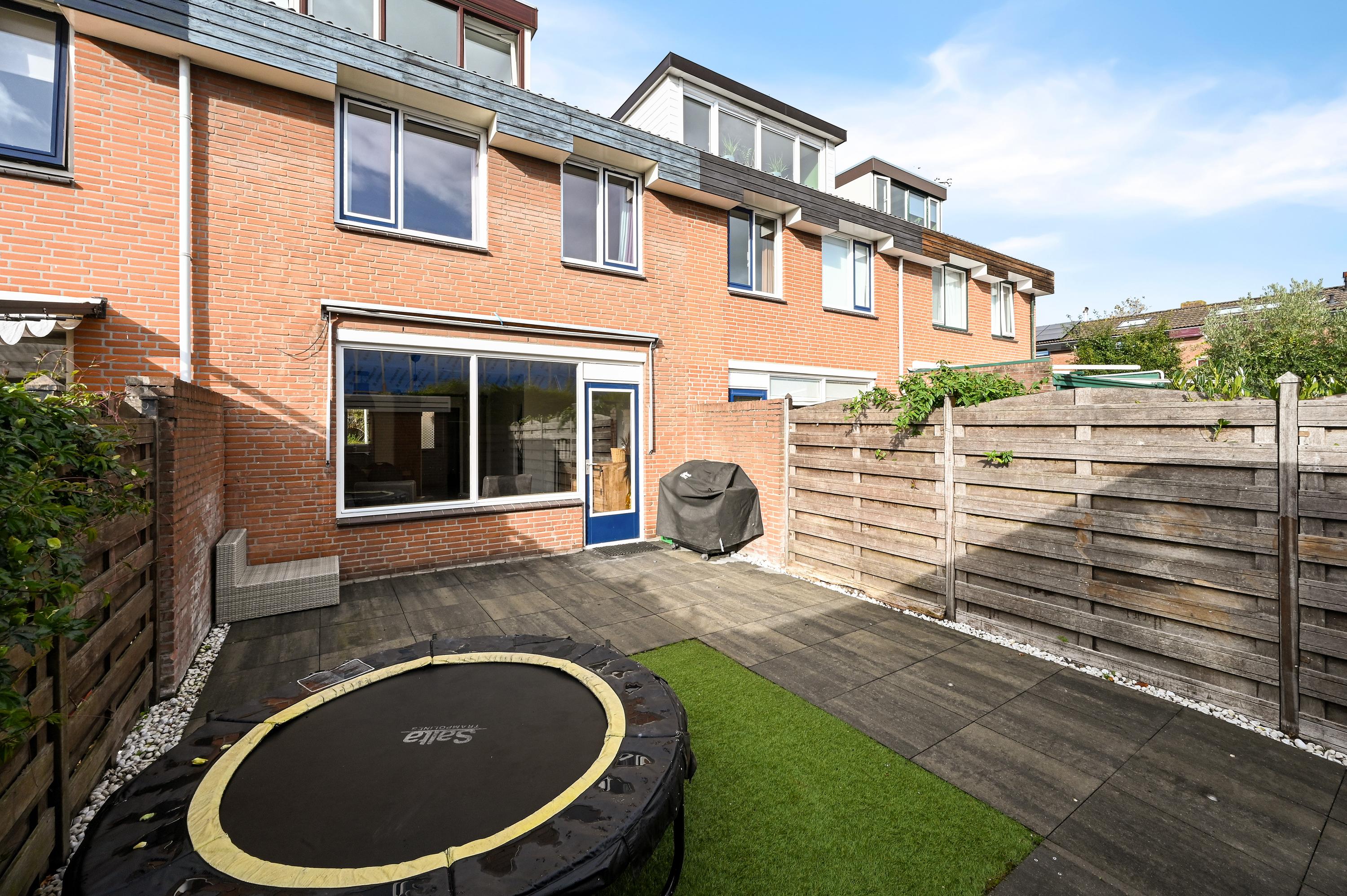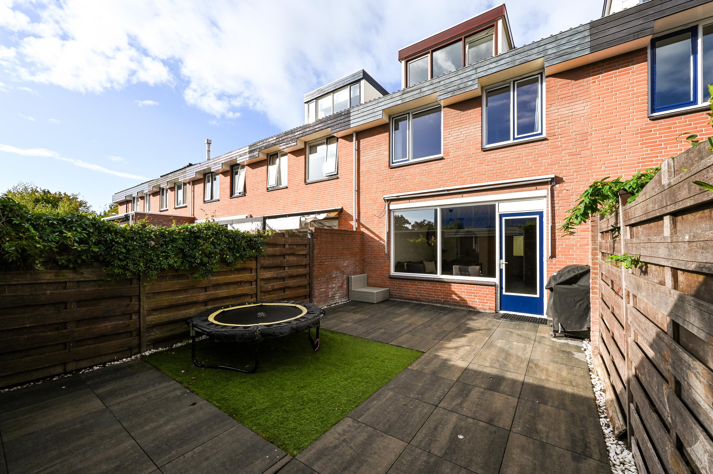 De achtertuin is verzorgd aangelegd en grotendeels bestraat, waardoor er volop ruimte is voor een loungeset of buitentafel. Verder beschikt de tuin over een praktische stenen berging met elektra en een achterom. Ook aan de voorzijde van de woning bevindt zich een nette tuin met zitgelegenheid.