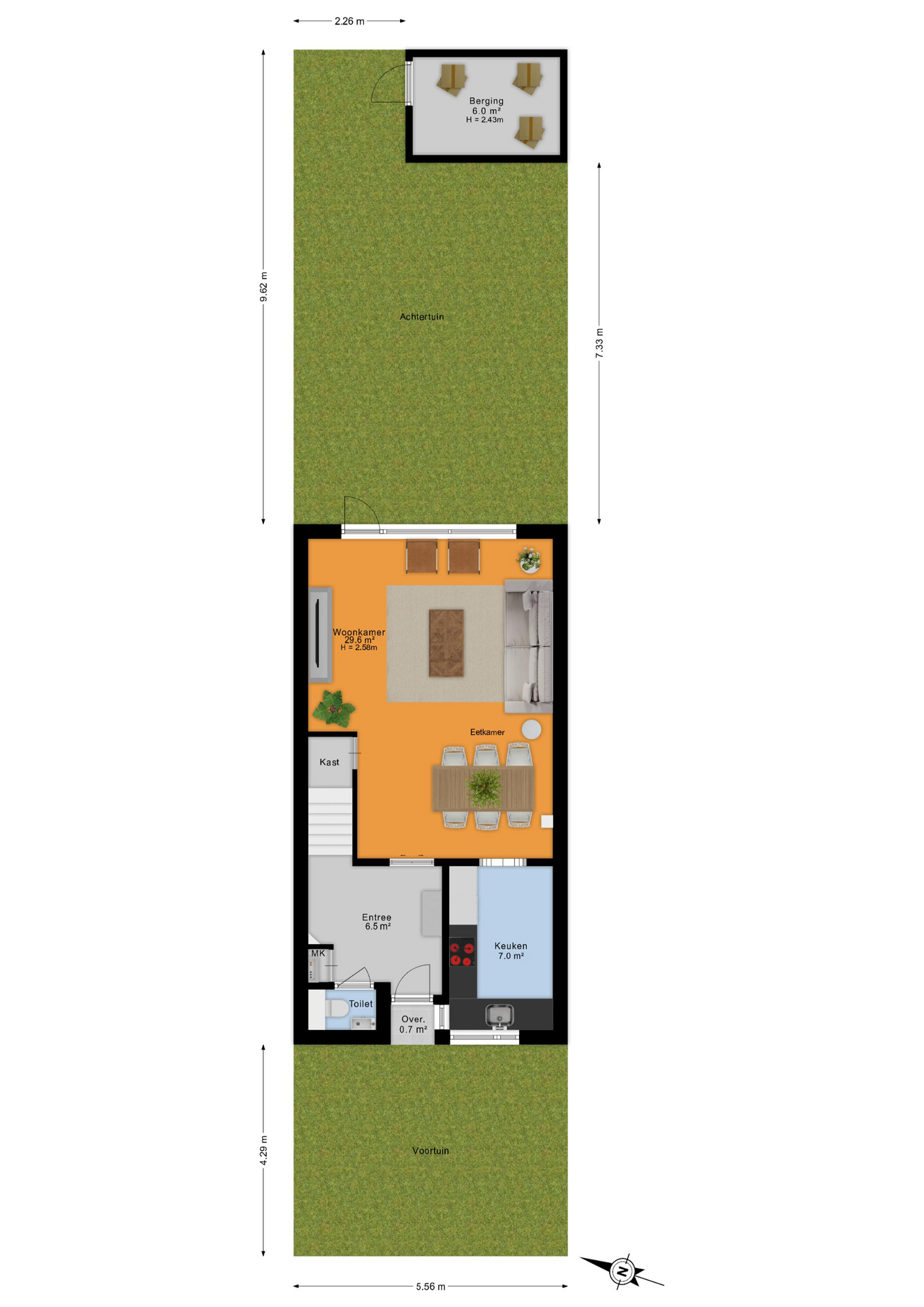 - Onderhoudsvriendelijke tuin met berging en achterom