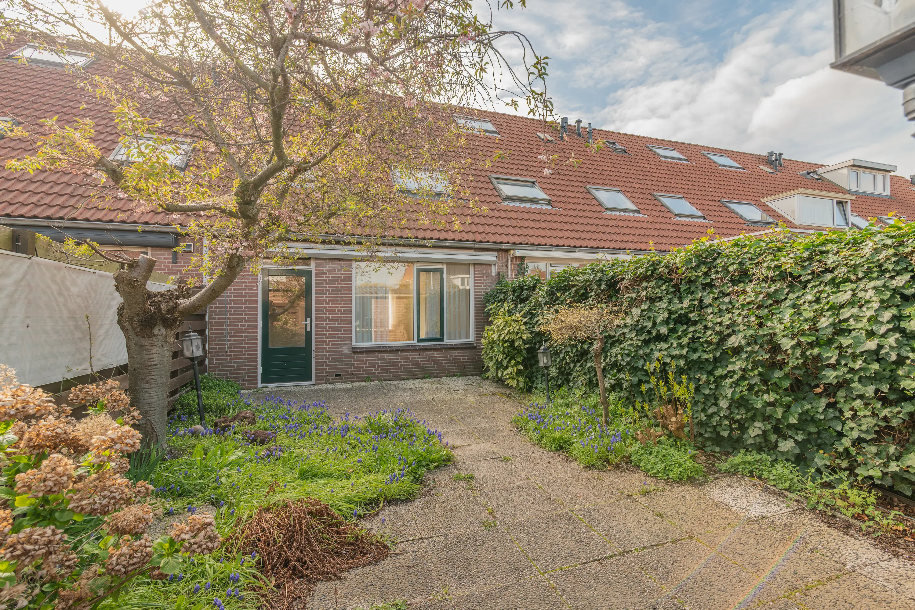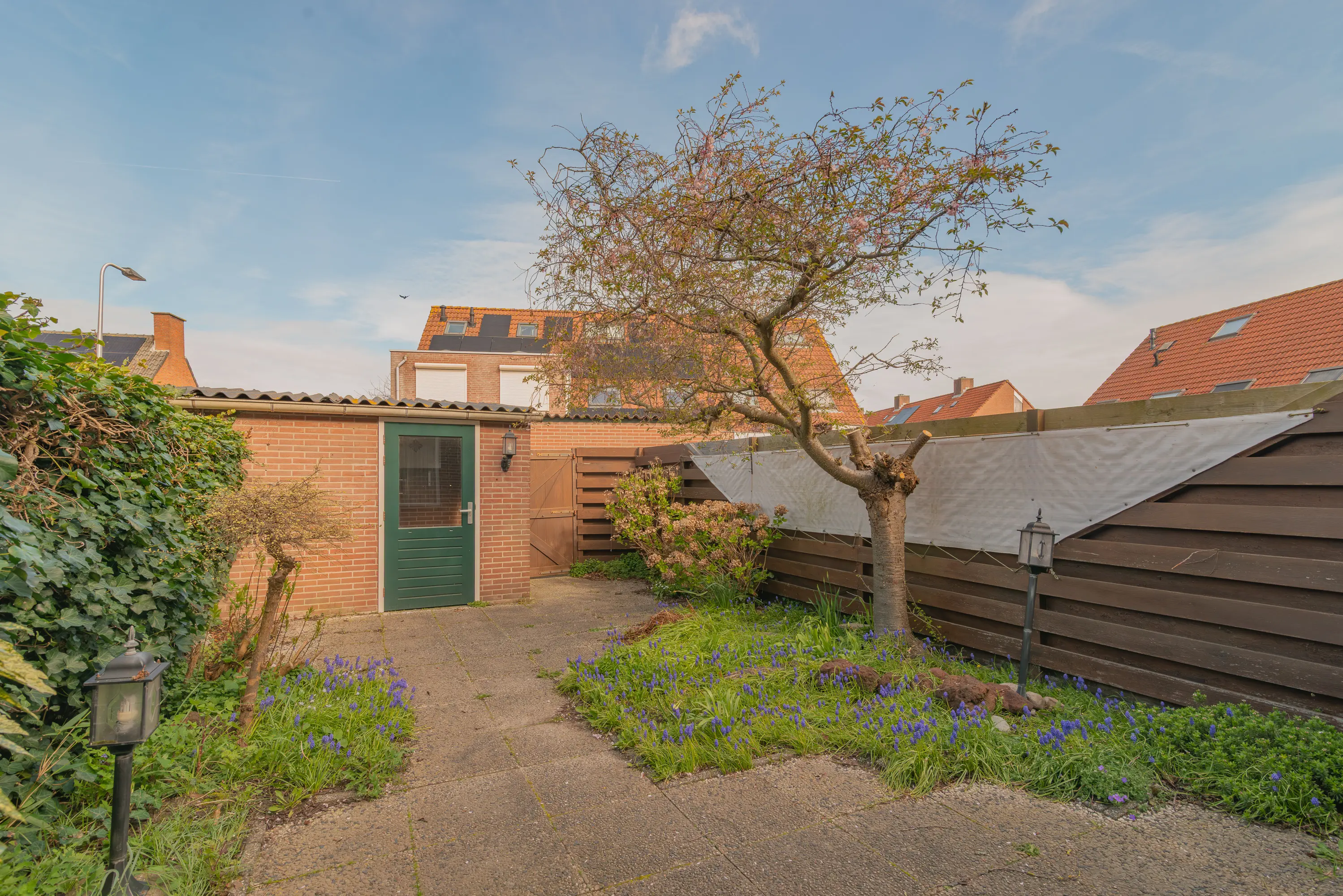 De achtertuin is verzorgd aangelegd met een combinatie van bestrating en groen, waardoor er een prettige balans is tussen onderhoudsgemak en sfeer. De tuin biedt voldoende ruimte om een gezellig zitgedeelte te creëren en te genieten van het buitenleven. Achterin de tuin bevindt zich een stenen berging, ideaal voor het opbergen van fietsen en tuingereedschap. De tuin is tevens bereikbaar via een achterom.