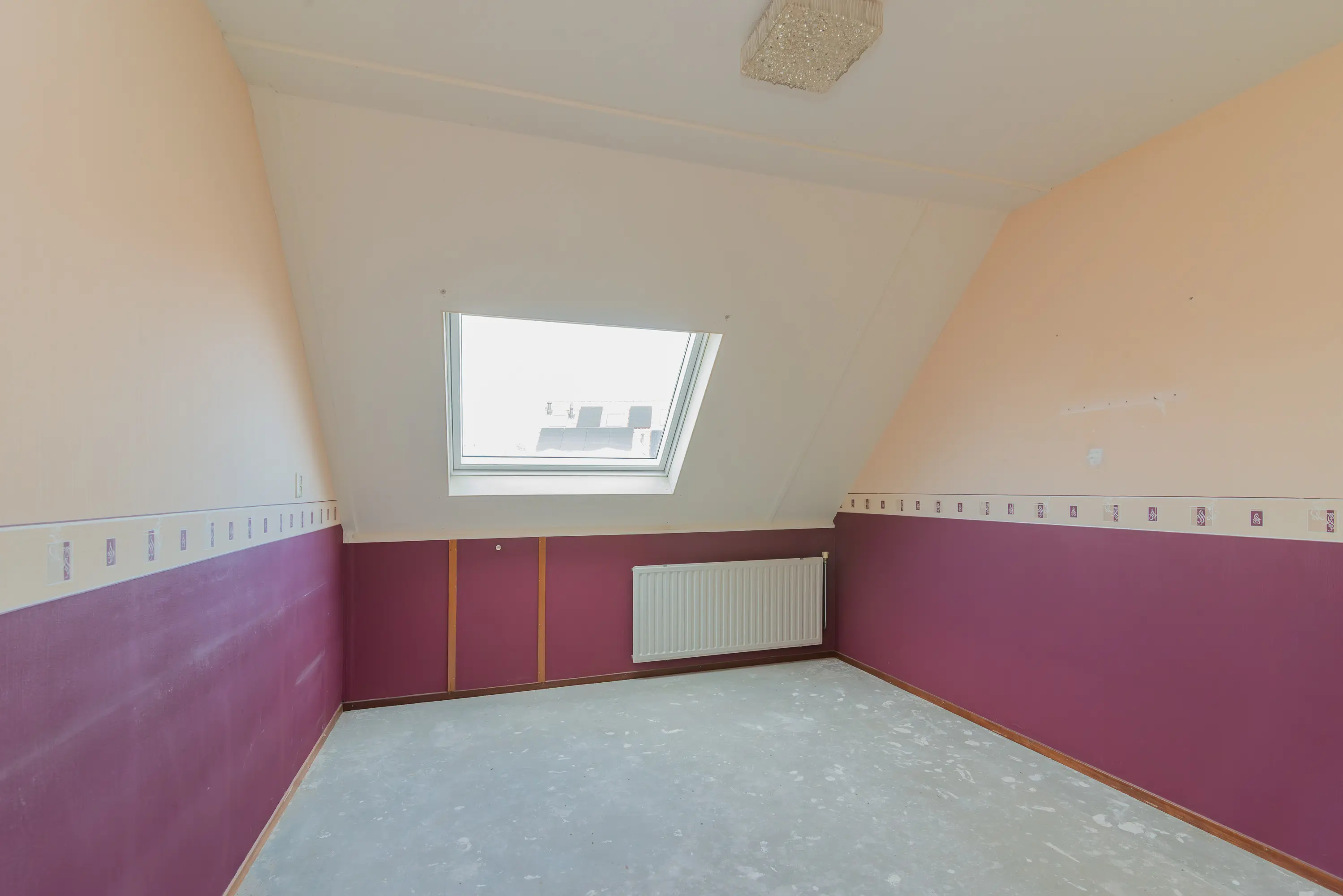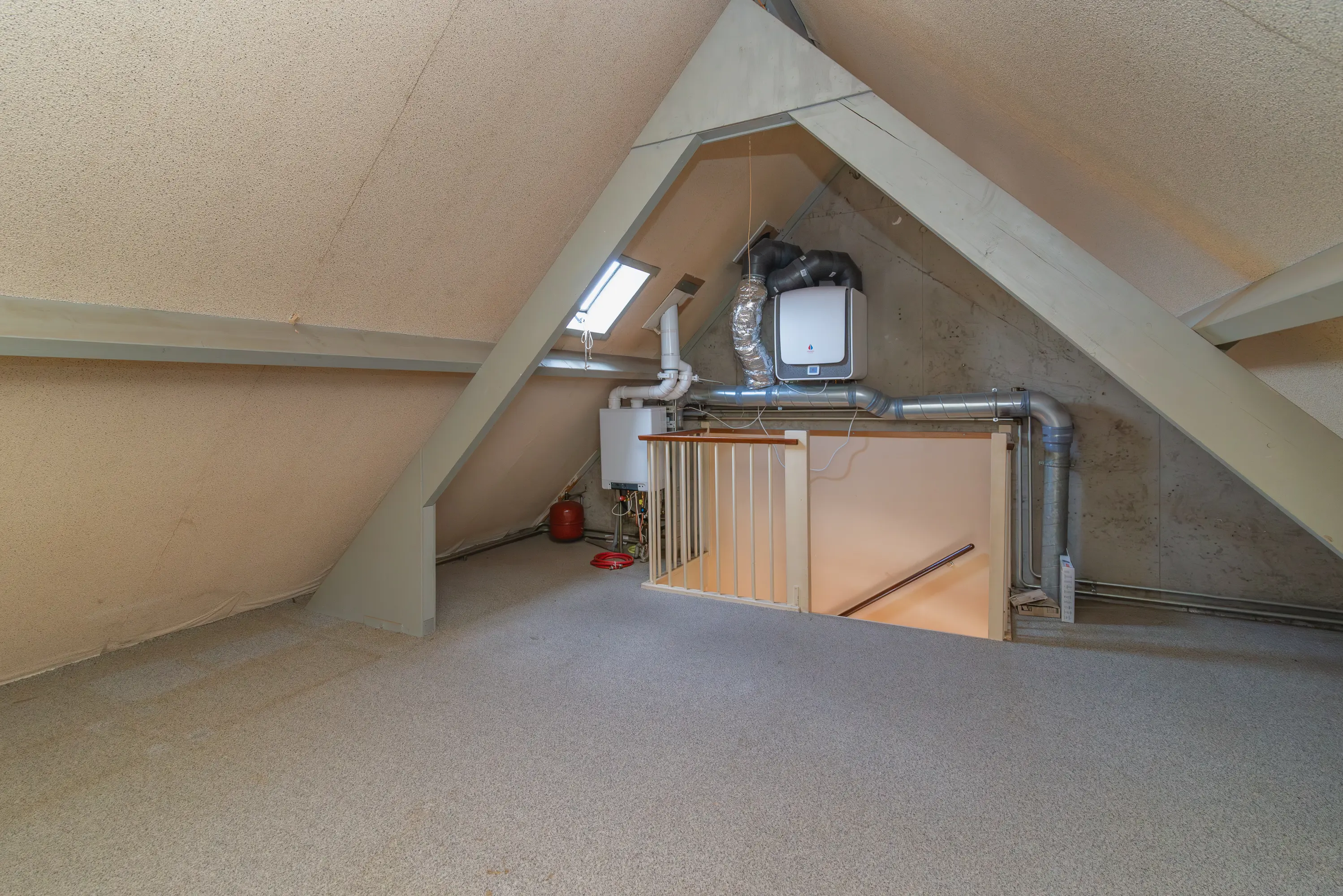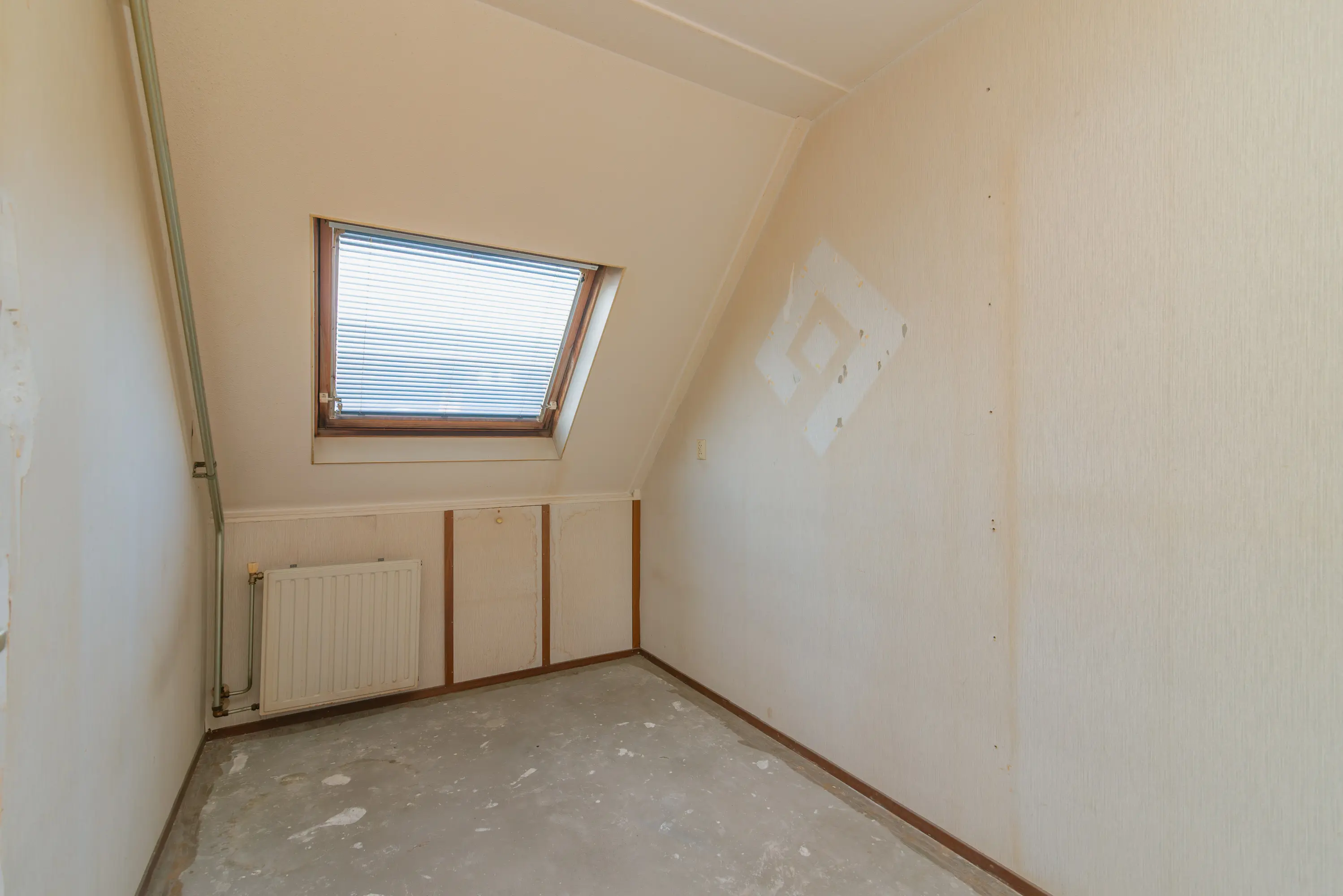 De zolder is voorzien van de cv-installatie en beschikt over een dakraam, wat zorgt voor daglichttoetreding. De ruimte biedt de mogelijkheid om een extra slaapkamer te realiseren en kan desgewenst worden uitgebreid, bijvoorbeeld door het plaatsen van een dakkapel.