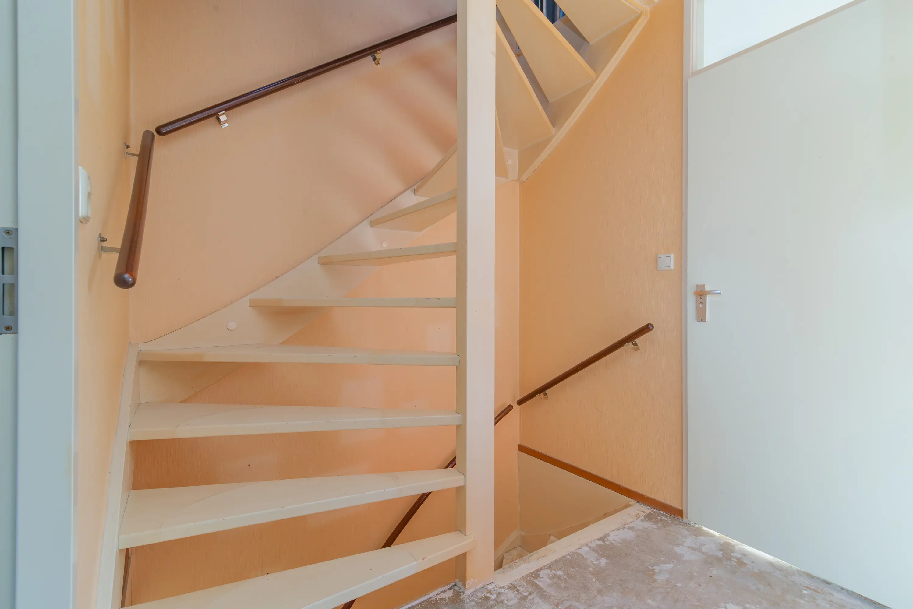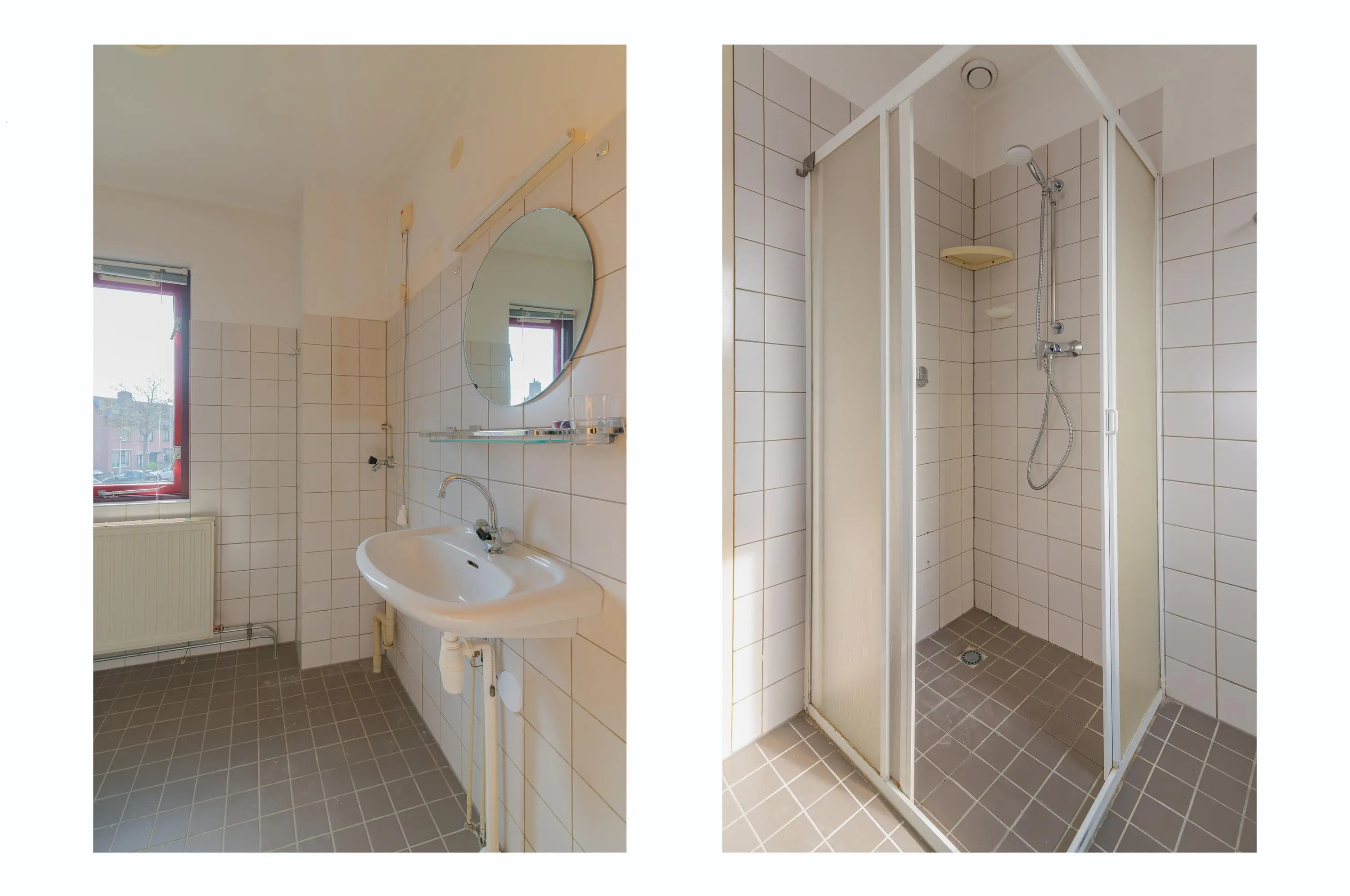 Overloop met toegang tot drie slaapkamers van goed formaat, allen voorzien van daglicht. De kamers bieden diverse indelingsmogelijkheden, bijvoorbeeld als slaap-, werk- of hobbyruimte. De badkamer is eenvoudig uitgevoerd en voorzien van een wastafel en douche. Dankzij het aanwezige raam is er sprake van natuurlijke ventilatie en daglicht. De ruimte biedt een goede basis en kan naar eigen wens worden gemoderniseerd.