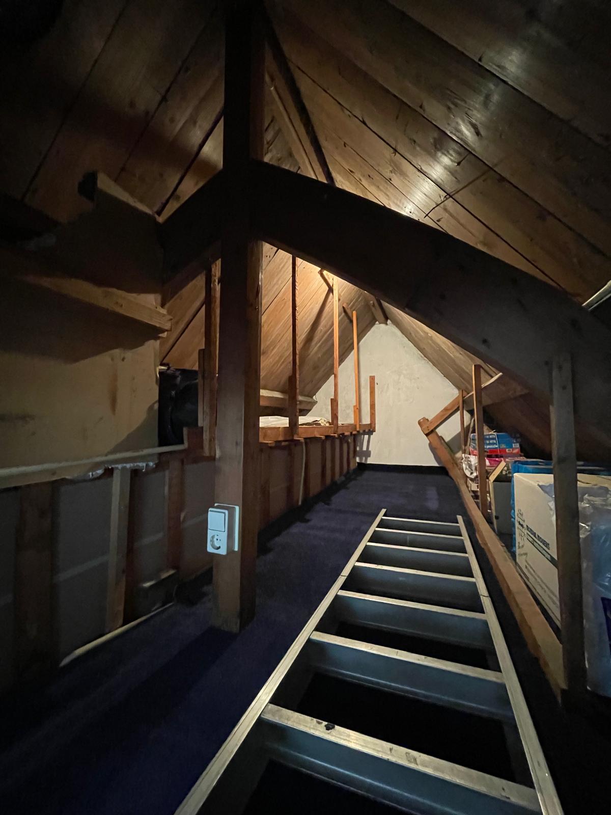 • Via een van de slaapkamers kom je op een grote vliering, die deels een juiste stahoogte heeft