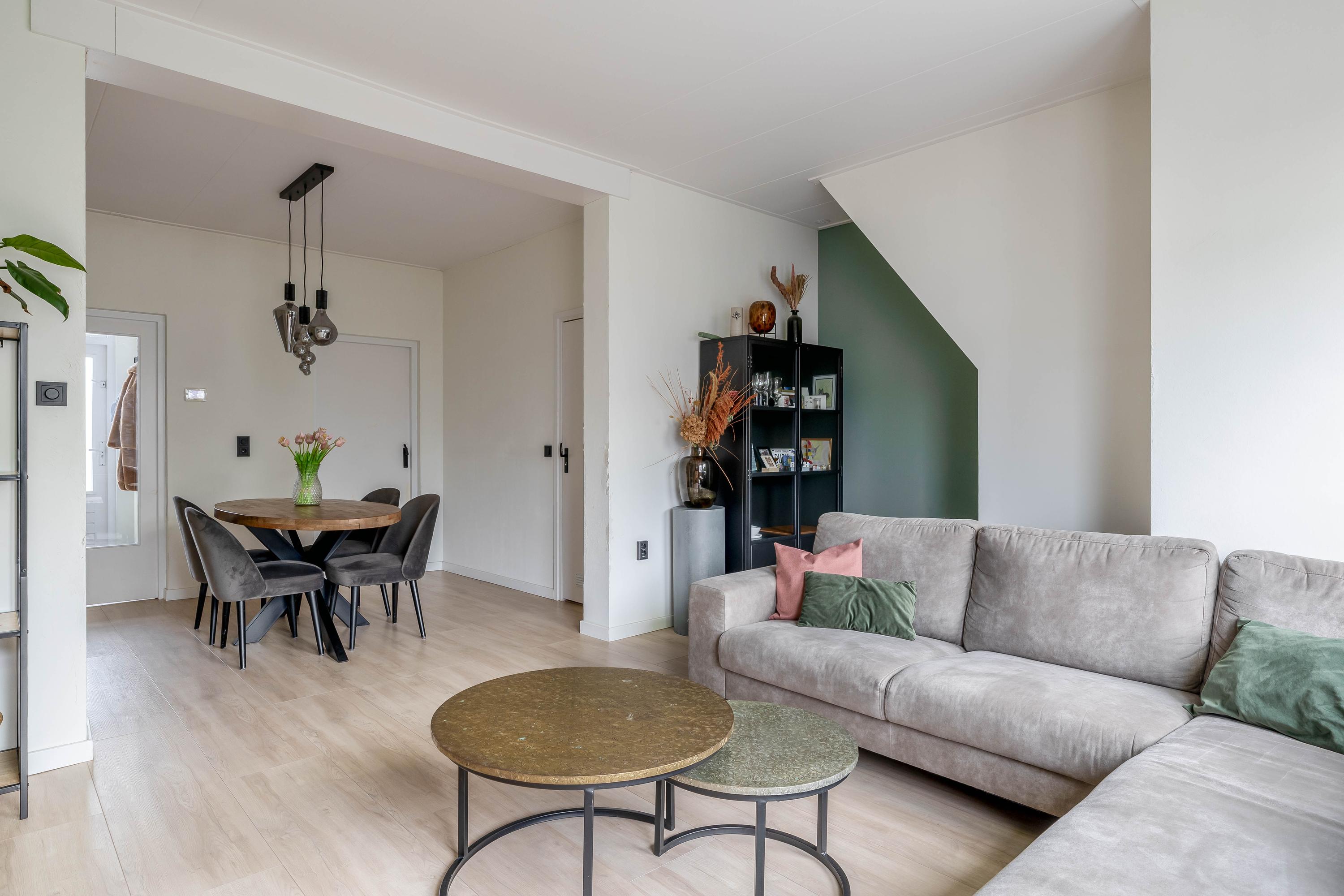 Hier is voldoende ruimte voor een comfortabele zithoek én een eethoek. Een fijne plek om thuis te komen na een lange dag of gezellig te tafelen met vrienden.
