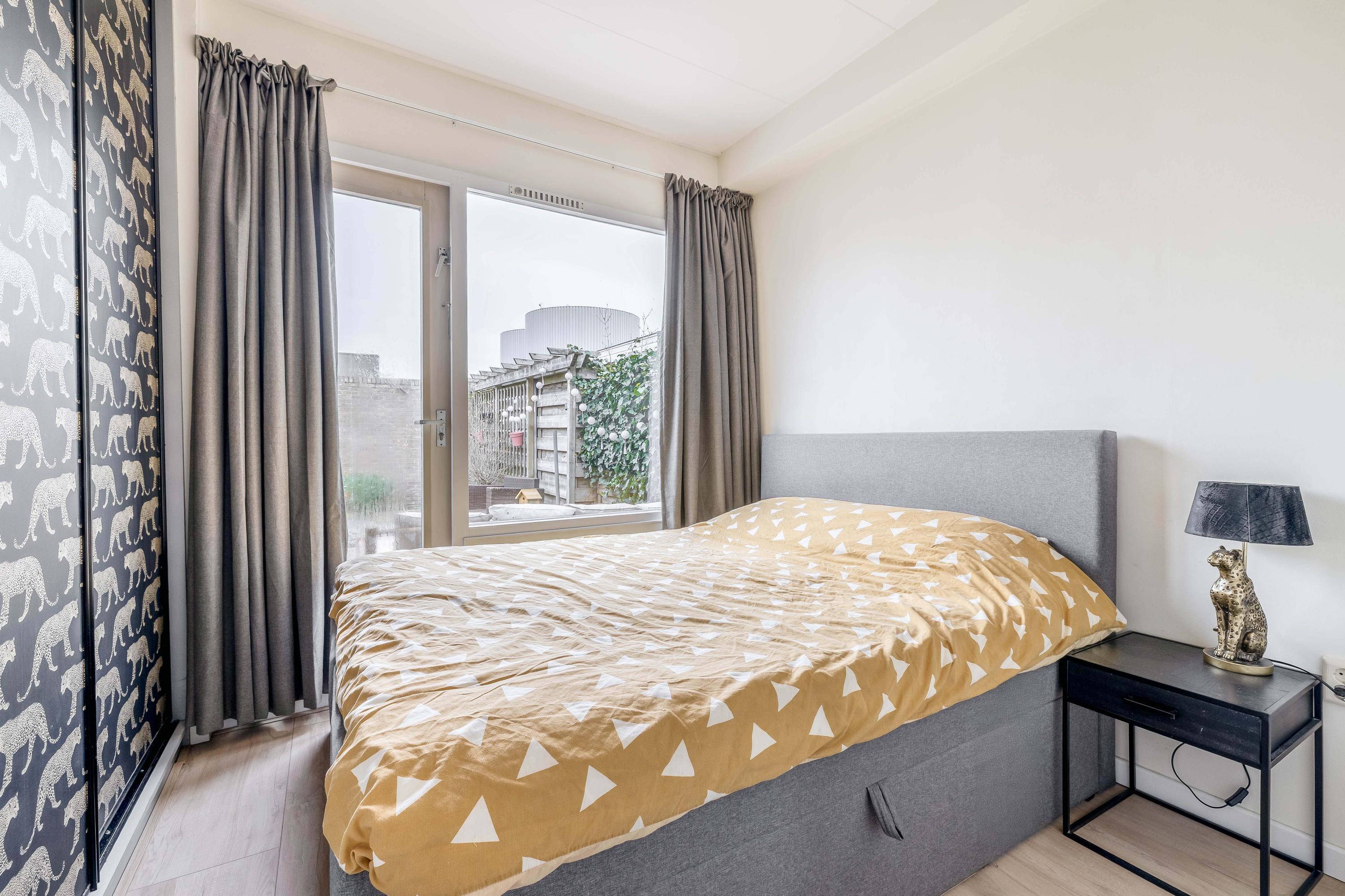 De woning beschikt over een rustig gelegen slaapkamer aan de achterzijde. Deze ruimte maakt onderdeel uit van de aanbouw en biedt voldoende plek voor een tweepersoonsbed en kastruimte.
