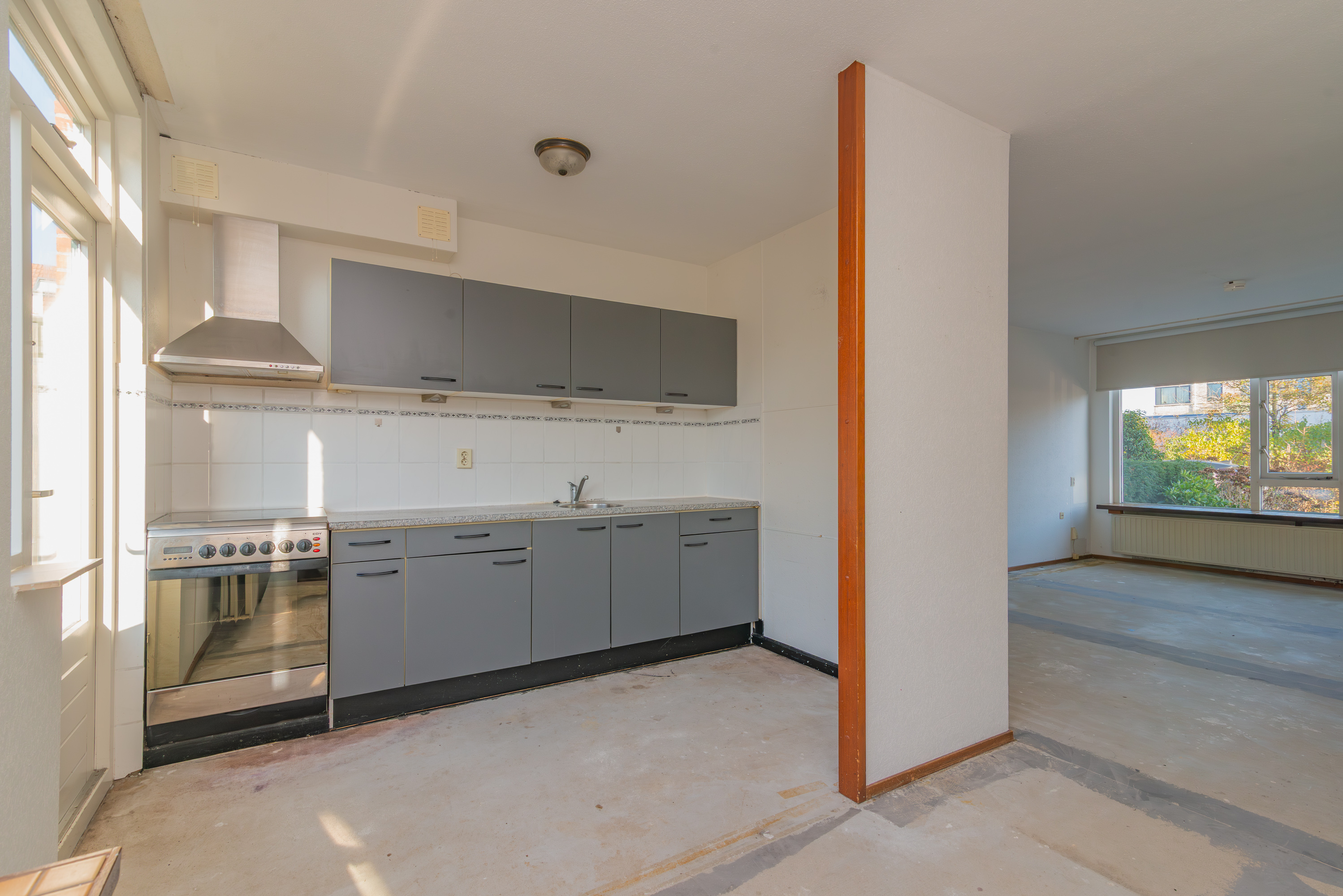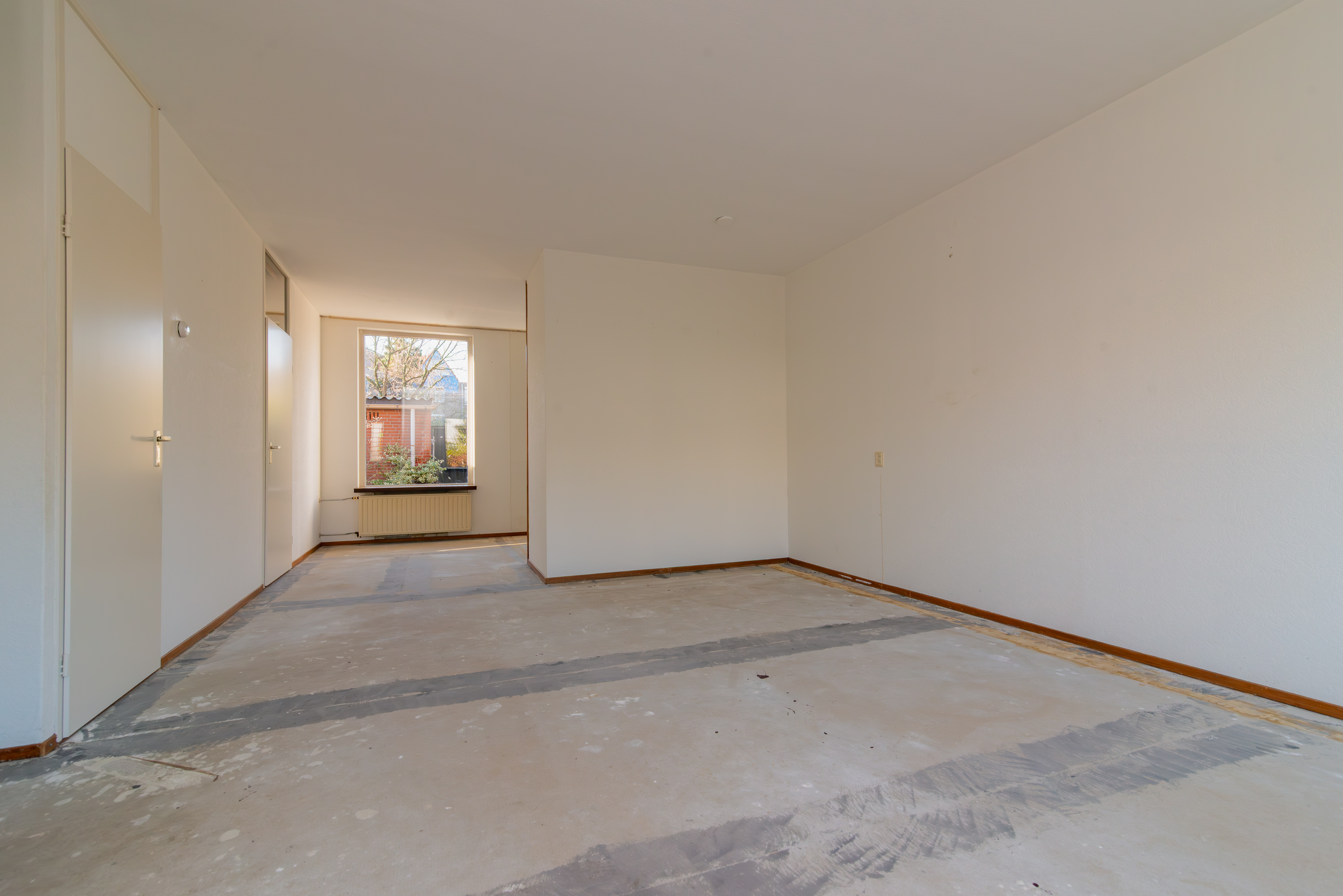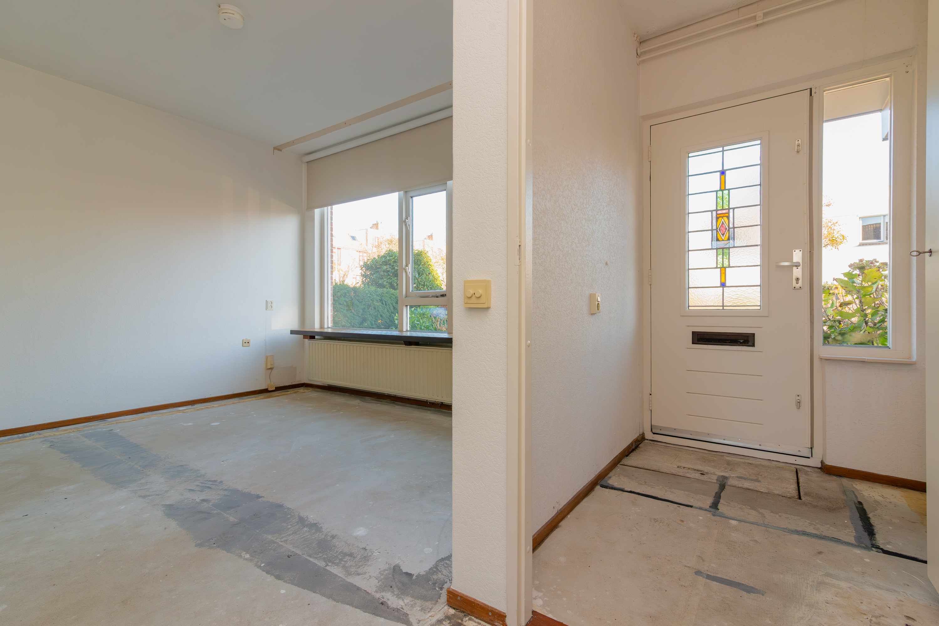Aan de voorzijde van de woning bevindt zich de entree met hal, toilet, meterkast en toegang tot de woonkamer. De hal geeft een eerste indruk van de nette, ruime opzet van de woning. De woonkamer ligt aan de straatzijde en beschikt over een groot raam waardoor er veel daglicht de woning binnenkomt. De rechthoekige vorm maakt het eenvoudig om zowel een zitgedeelte als een eethoek praktisch in te delen. De betonnen vloer is voorbereid om naar eigen wens af te werken, waardoor de nieuwe bewoners volledige vrijheid hebben in stijl en materiaalkeuze. De keuken (2004) bevindt zich aan de achterzijde van de woning en is uitgevoerd in een rechte opstelling met diverse kastjes en werkruimte. Vanuit de keuken is er directe toegang tot de achtertuin. Ook hier geldt: een ideale ruimte om naar eigen smaak te moderniseren en volledig naar wens in te richten.