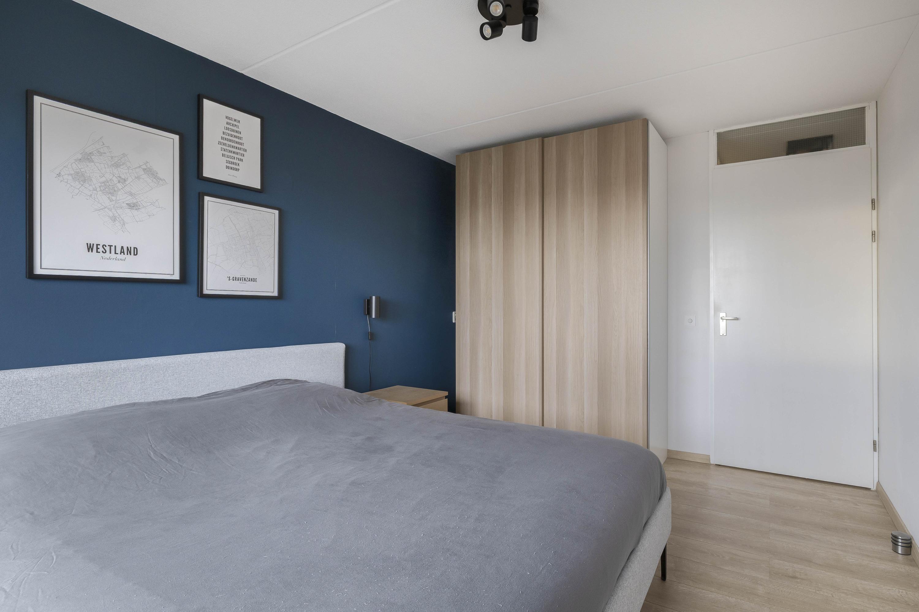 Via de balkondeur aan de achterzijde van het appartement, stap je op een net onderhouden balkon. In de ochtend en middag ligt dit balkon heerlijk in de zon. Het uitzicht is open, met zicht op groen, daken en de toren van Monster. Door de vrijstaande ligging aan de rand van het complex is er geen directe bebouwing tegenover je balkon, waardoor je hier in alle rust kunt zitten.