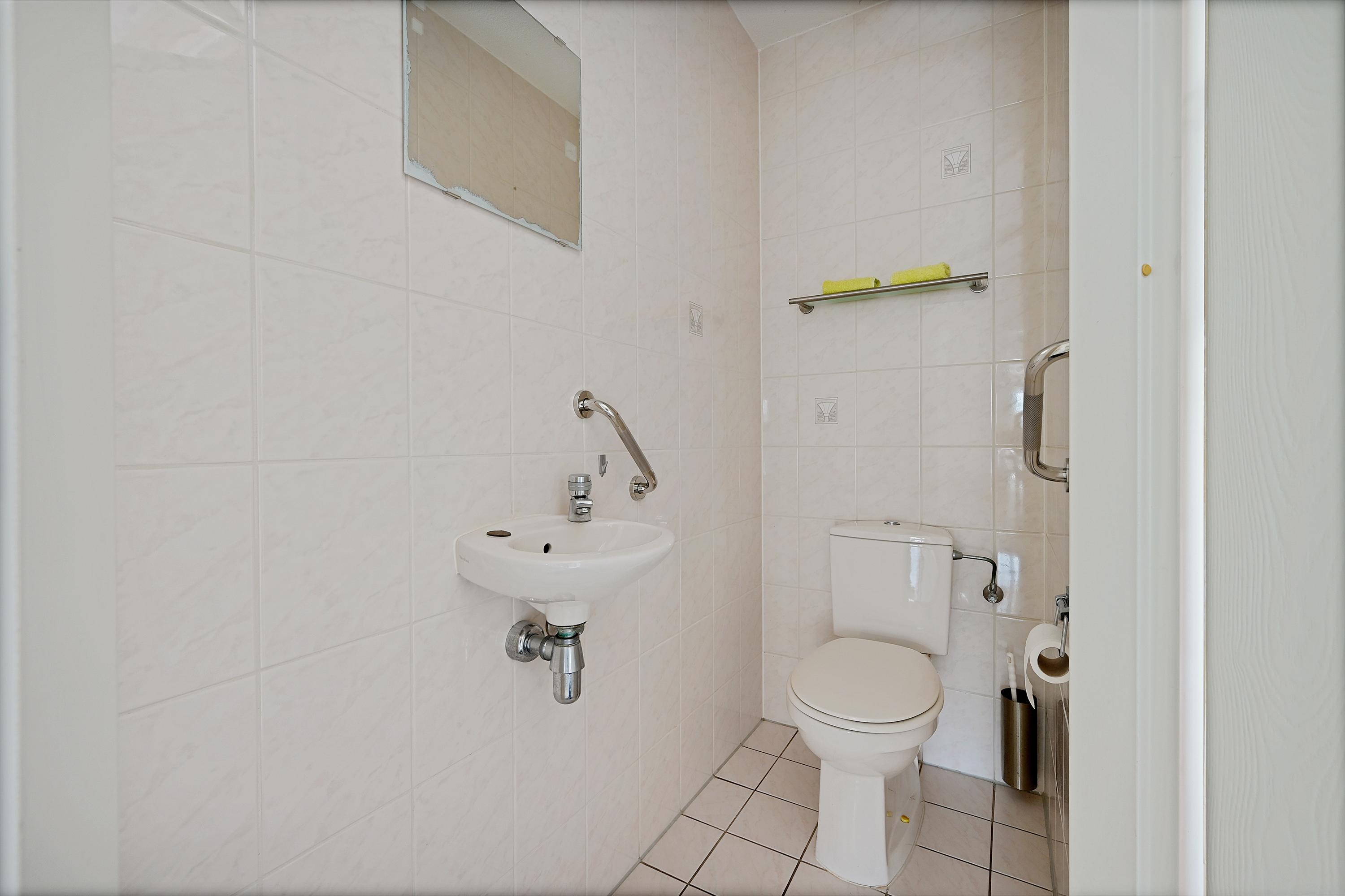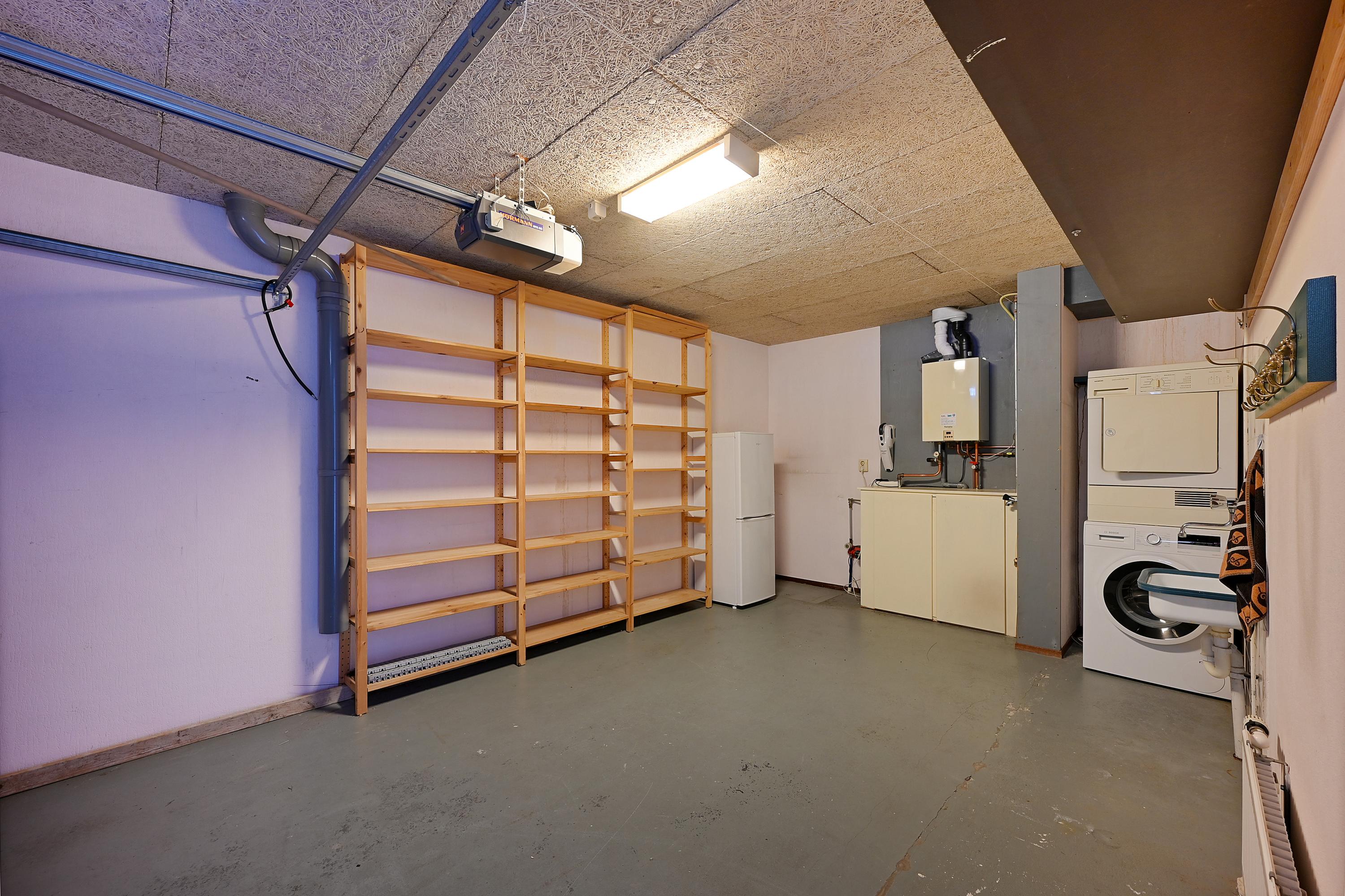 De garage is zowel van binnenuit als via de oprit bereikbaar en beschikt over elektra, water én aansluitingen voor je wasmachine en droger.