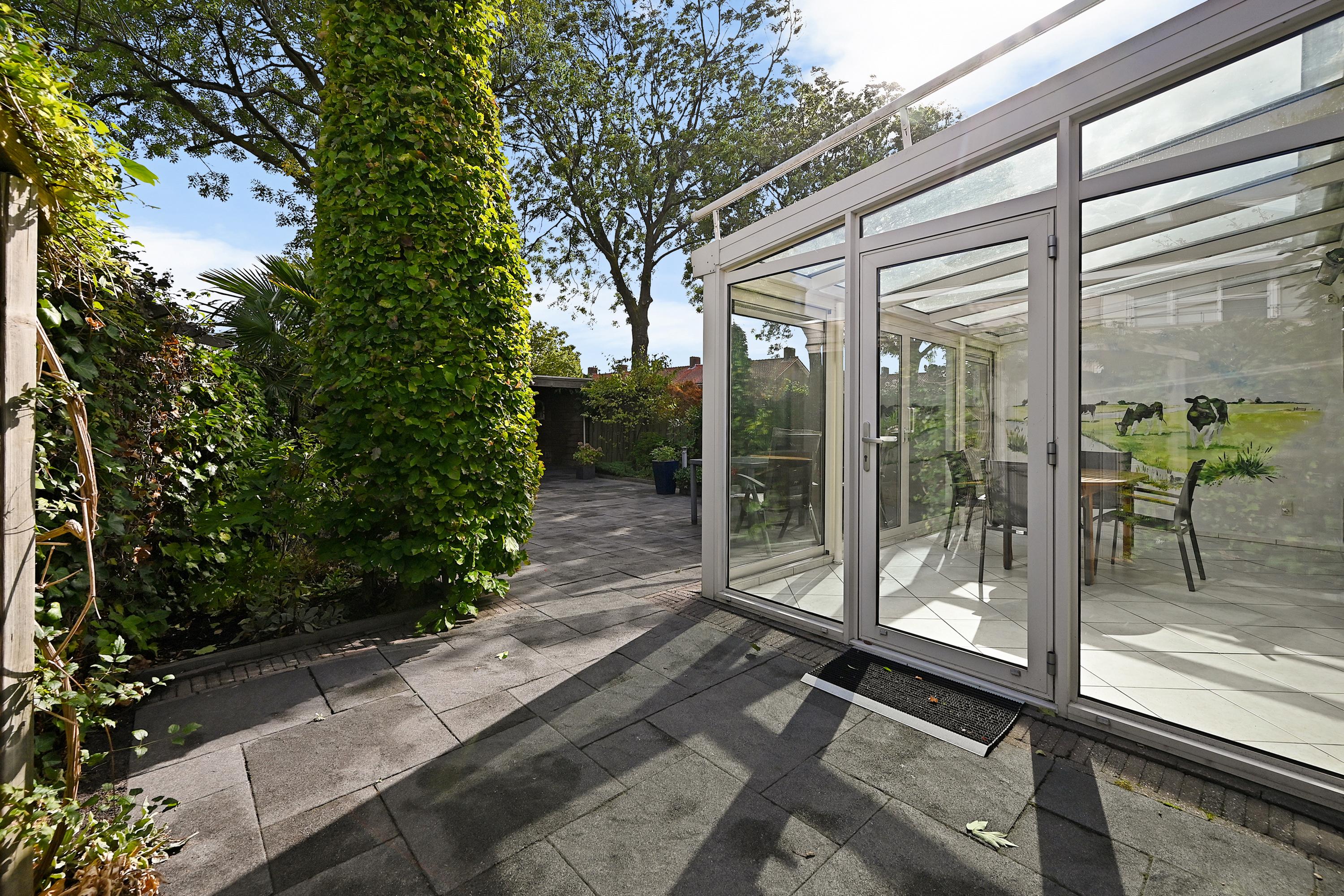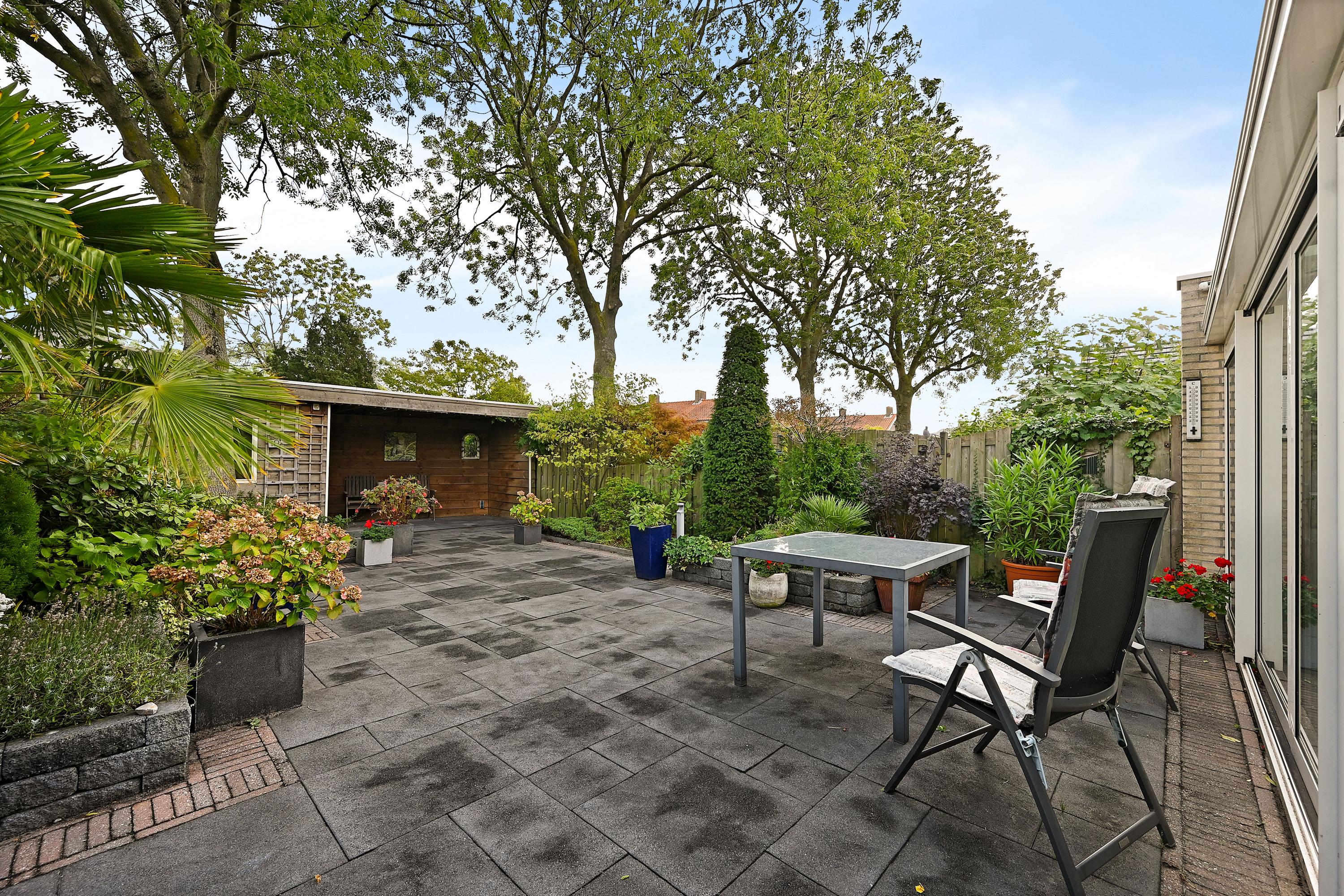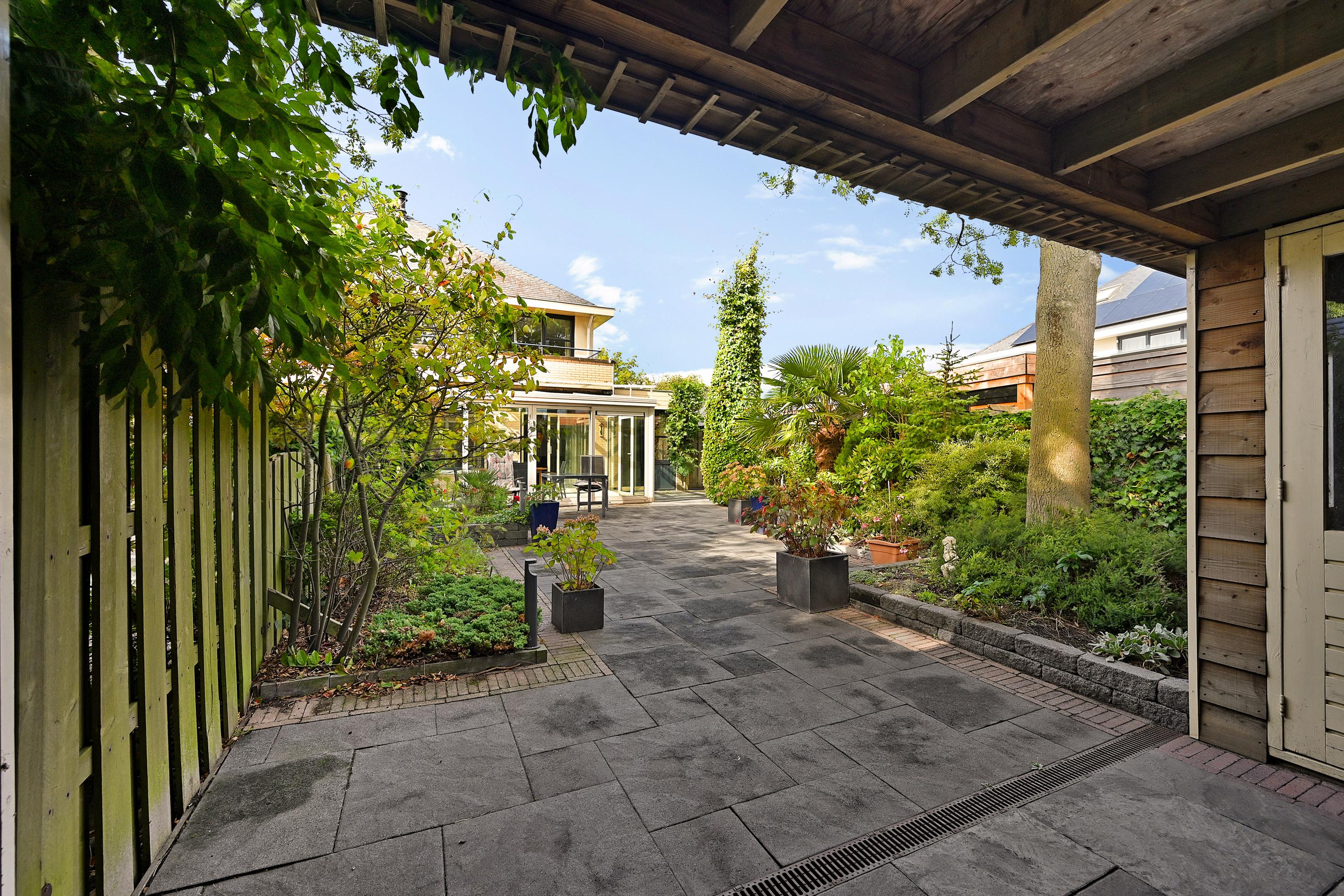 De diepe achtertuin is een van de grote pluspunten van deze woning. Fraai aangelegd met bestrating en beplanting, een vrijstaande houten berging én volop privacy. Aan de voorzijde heb je een eigen oprit met plek voor meerdere auto’s.