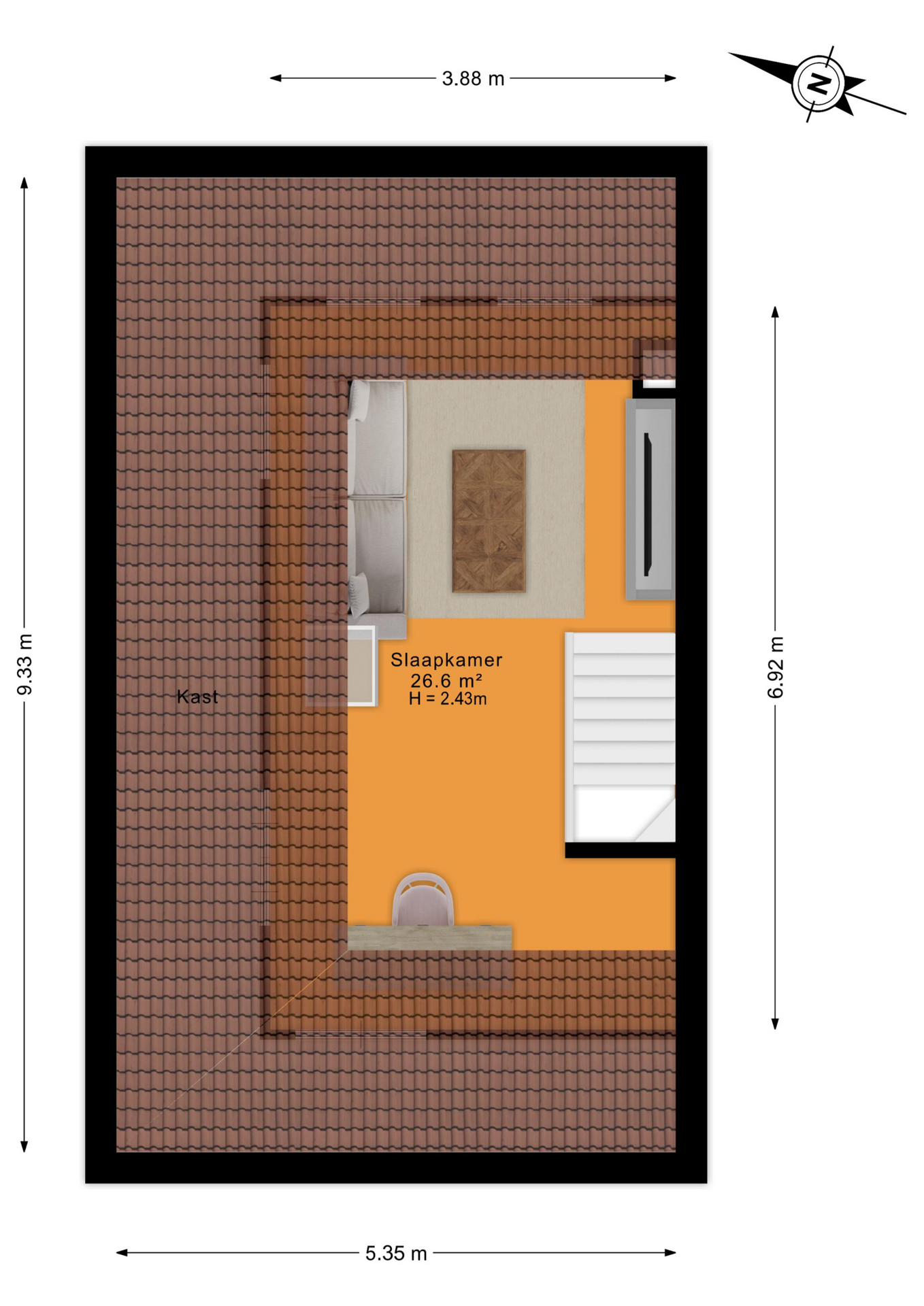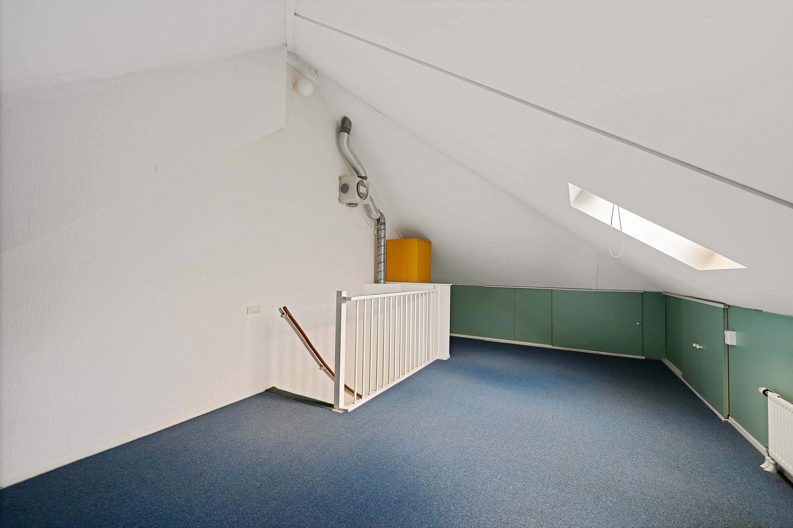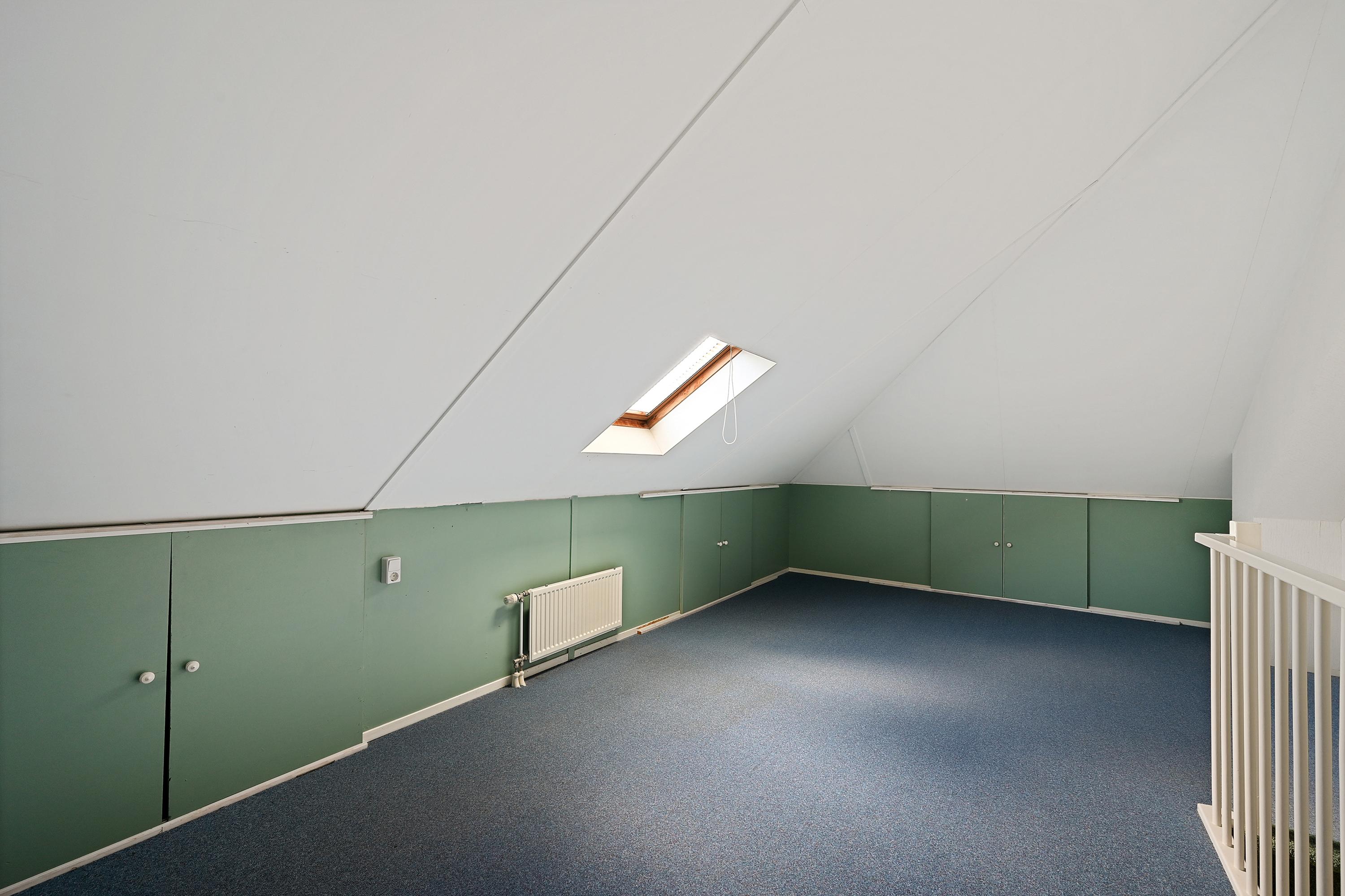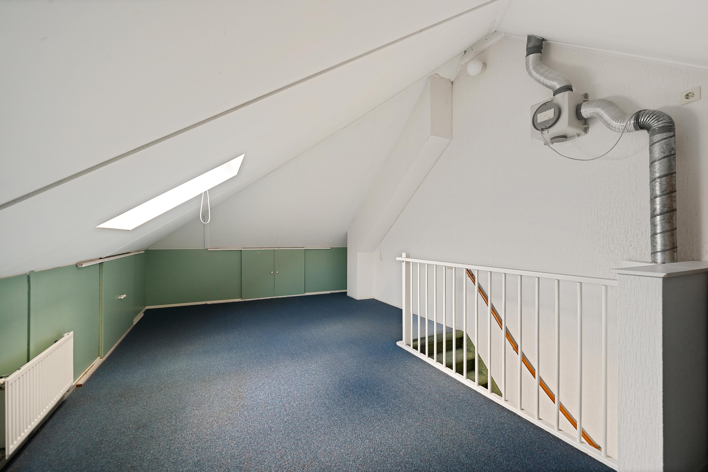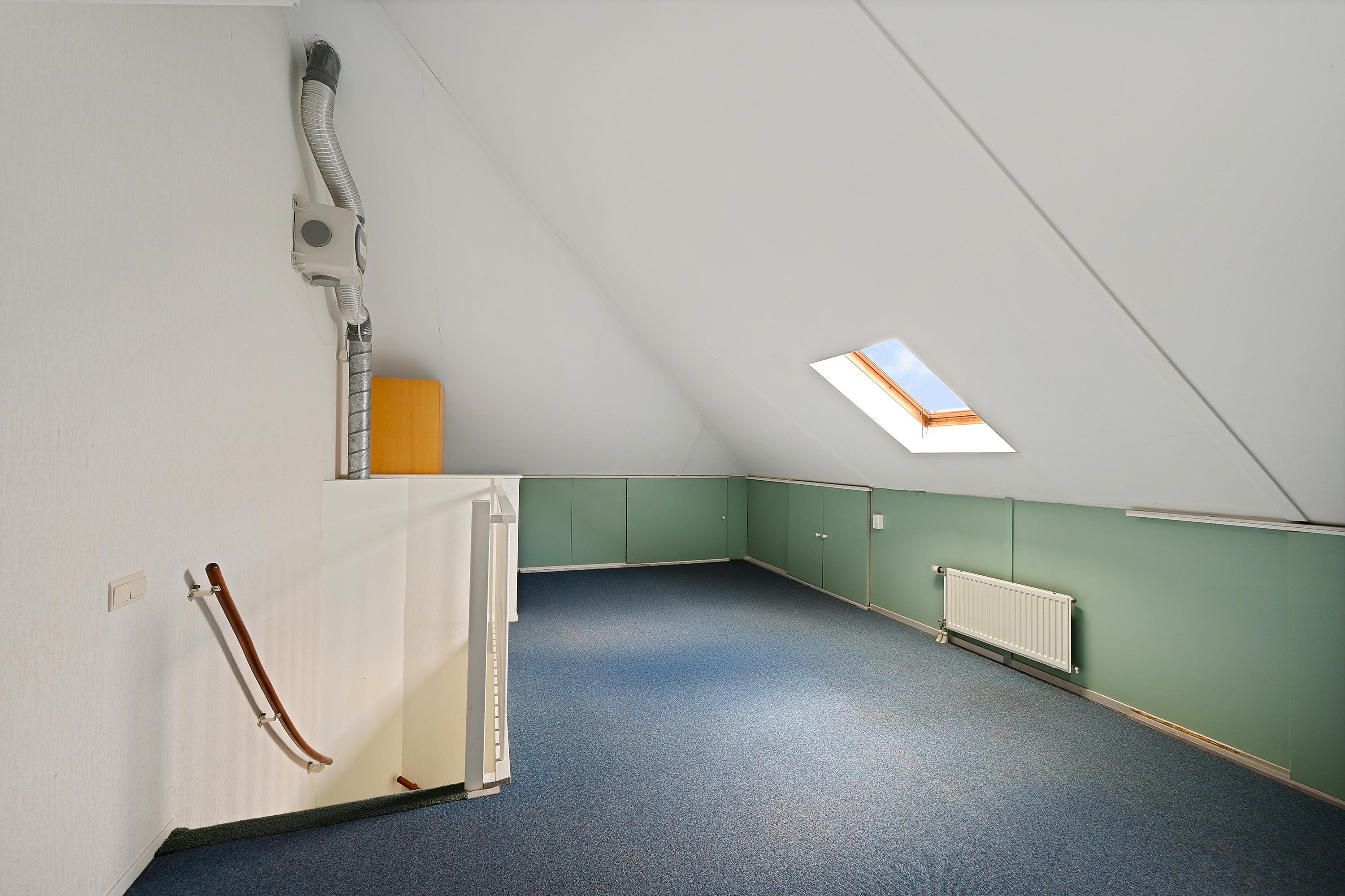 Via een vaste trap bereik je de ruime zolder, nu ingericht als hobby- en werkruimte. Dankzij het dakraam is het hier heerlijk licht, en je kunt deze verdieping eenvoudig omtoveren tot extra slaapkamer.